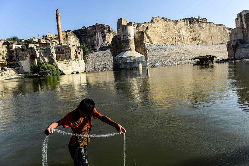 The Turkish town of Hasankeyf, a former trading post along the Silk Road, which has seen the Romans, Byzantines, Turkic tribes and Ottomans leave their mark, will soon be partially flooded by the Ilisu Dam, as part of the Southeast Anatolian project (GAP) and one of Turkey’s largest hydroelectric projects, which is being built downstream. The inauguration of Turkey's controversial Ilisu dam on the Tigris River will also compound water shortages in neighbouring Iraq.