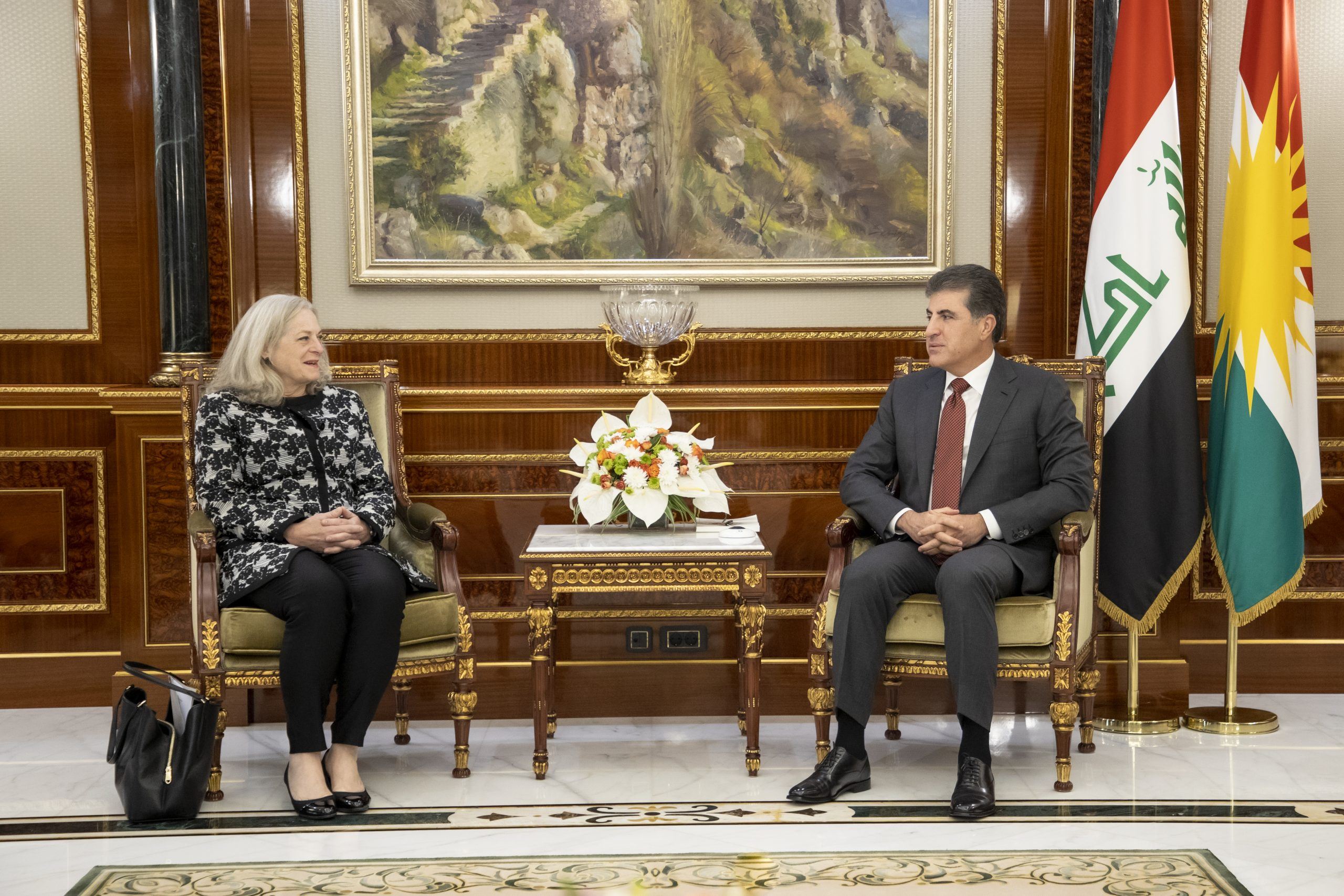 Kurdistan Region President Nechirvan Barzani (right) received US Ambassador to Iraq Alina Romanowski in Erbil on November 1, 2023. Photo: KRP