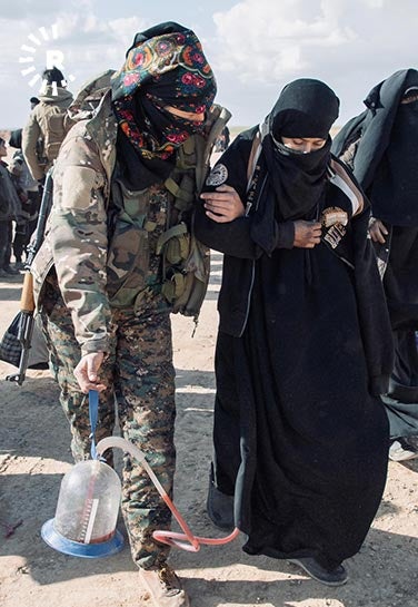 The SDF and US-led global coalition carefully process the thousands who escape the battlefield in order to separate out the fighters. They fingerprint and photograph the suspected fighters and the foreigners.