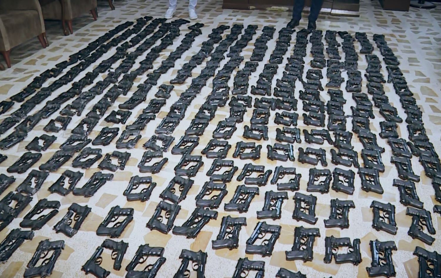 Erbil police seized 628 handguns illegally imported into the Kurdistan Region, seen on September 1, 2021. Photo: Rudaw