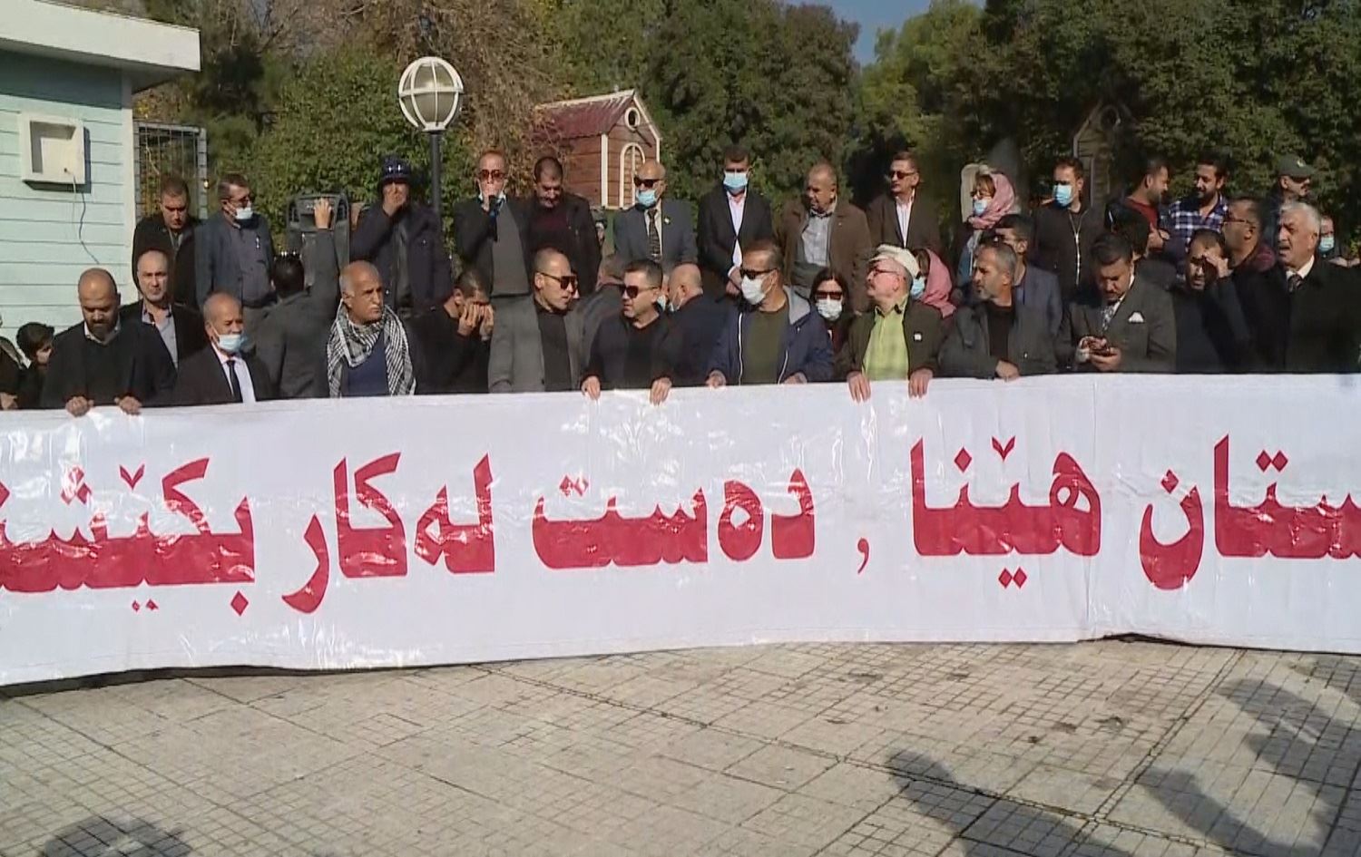 Protesters hold a banner saying "You have failed, resign" in Sulaimani on December 2, 2020. Photo: Rudaw