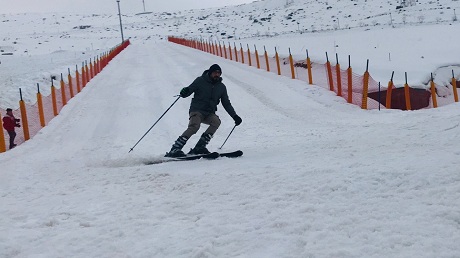 Three young girls from Sulaimani stood behind the fence. They curiously asked about the sport and were determined to try their luck no matter the risk or the cost. Two Chinese tourists came asking about where to rent ski gear while a few meters away Kurdish and Arab families stood on the edge of another slope for group selfies.