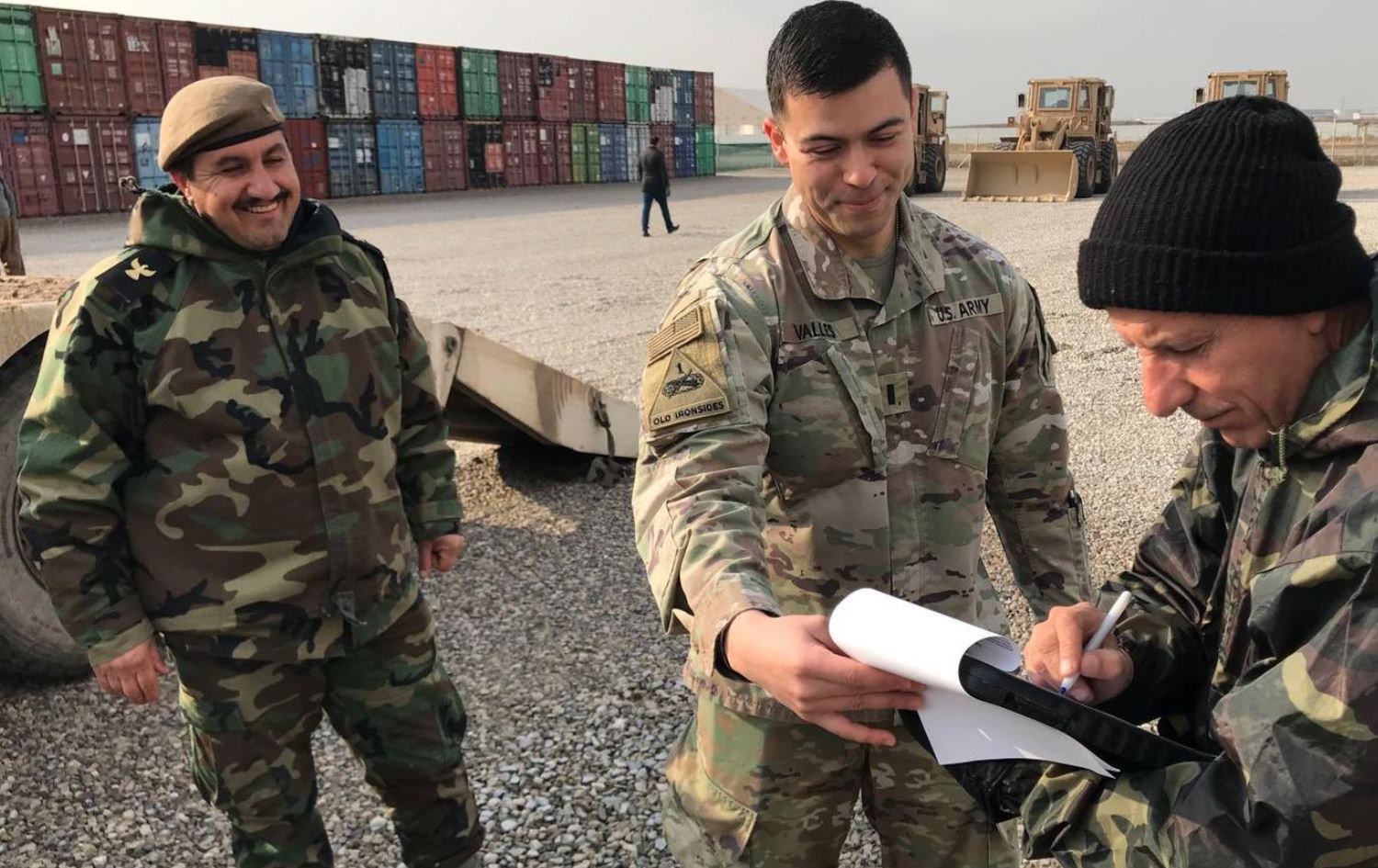 US army officer (middle) and Peshmerga forces during US divestment of weapons to the Peshmerga in January 2022. Photo: handout