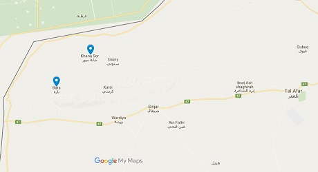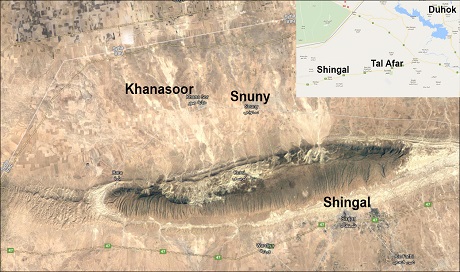 Map of the Khanasoor, Snuny, and the Shingal Region. Photo: Google Maps, Rudaw editing