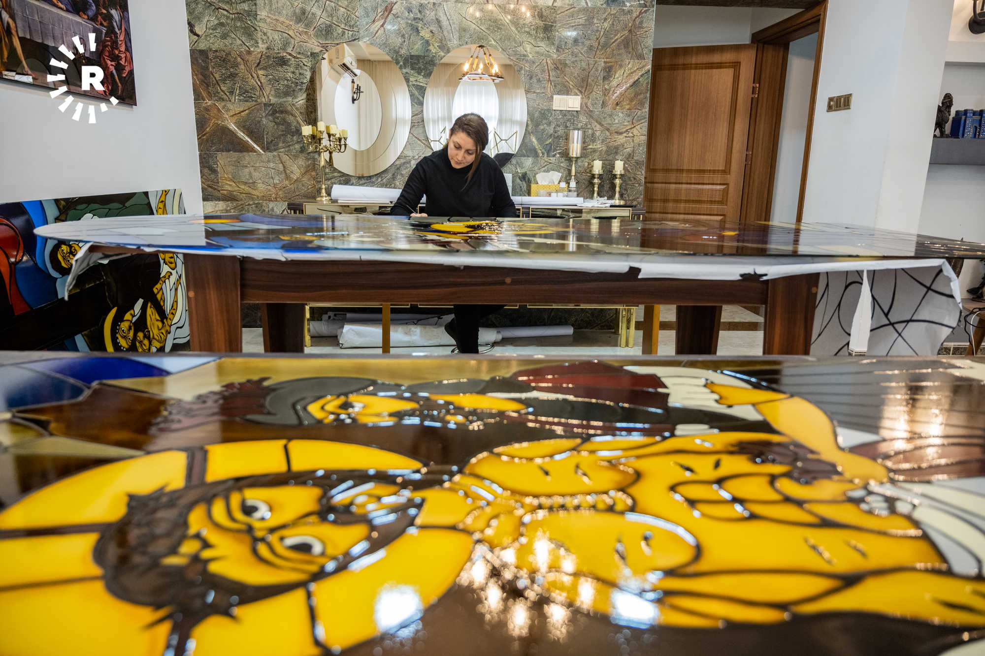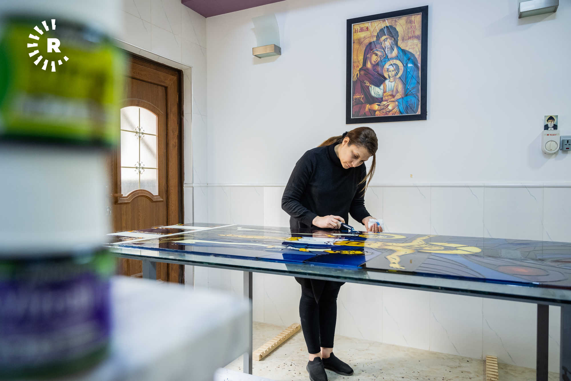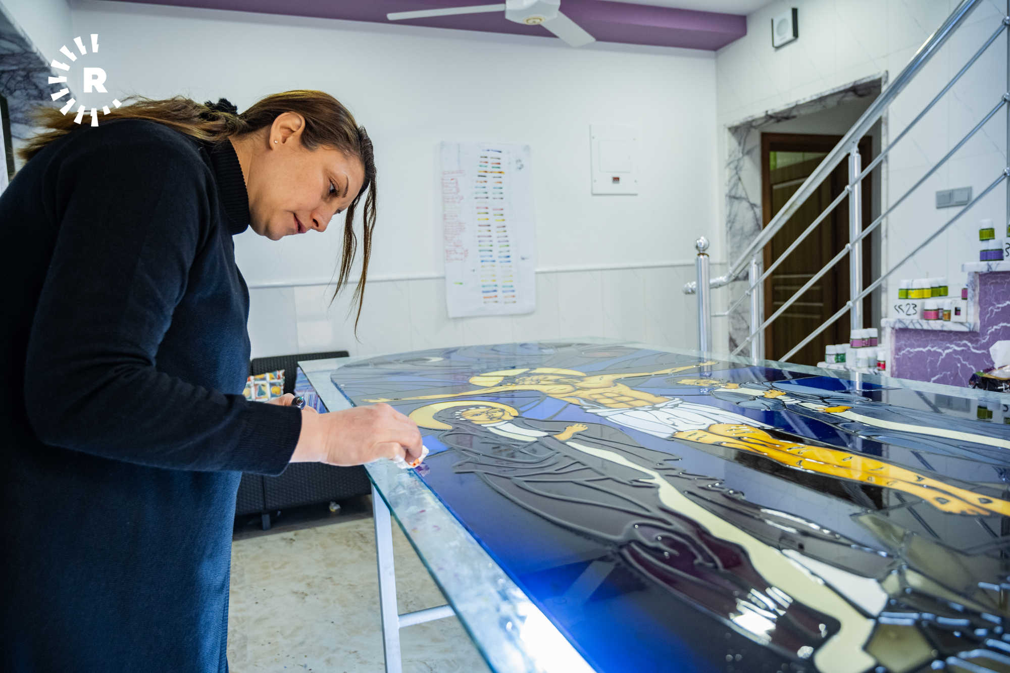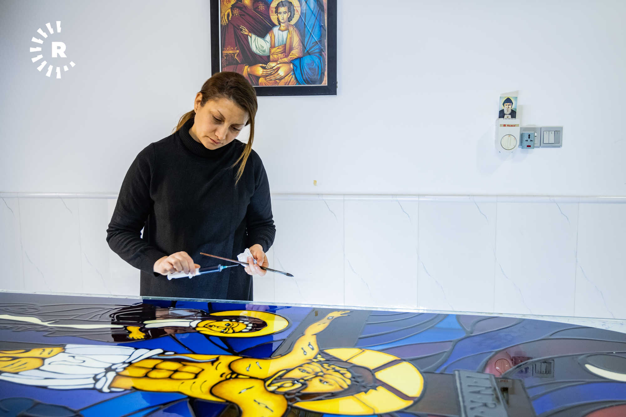 The artist has had several works displayed in France, and is now working on stained glass windows for the al-Tahira church in Qaraqosh.