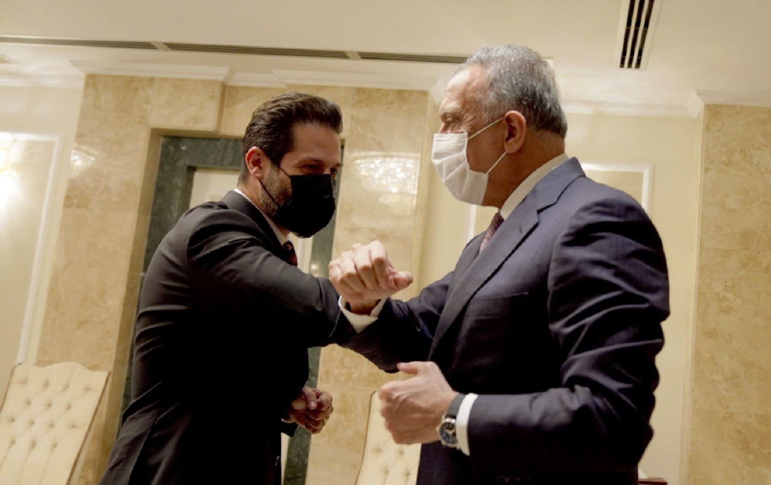 Kurdistan Region Deputy Prime Minister Qubad Talabani (left) and Iraqi Prime Minister Mustafa al-Kadhimi (right) bump elbows in Baghdad. Photo: handout/Qubad Talabani Twitter