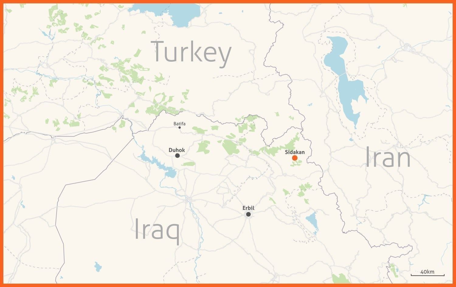 Map showing several cities in the Kurdistan Region, including Sidakan district. Graphic: Rudaw