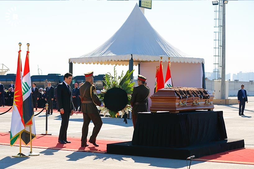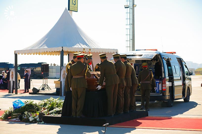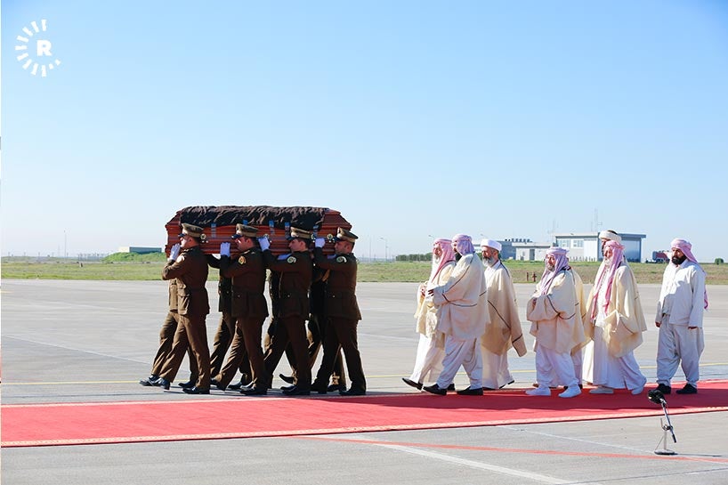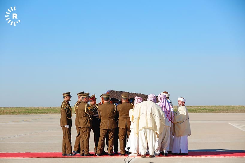 The body of deceased Yezidi spiritual spiritual leader Mir Tahsin Beg landed at Erbil International Airport on Monday.