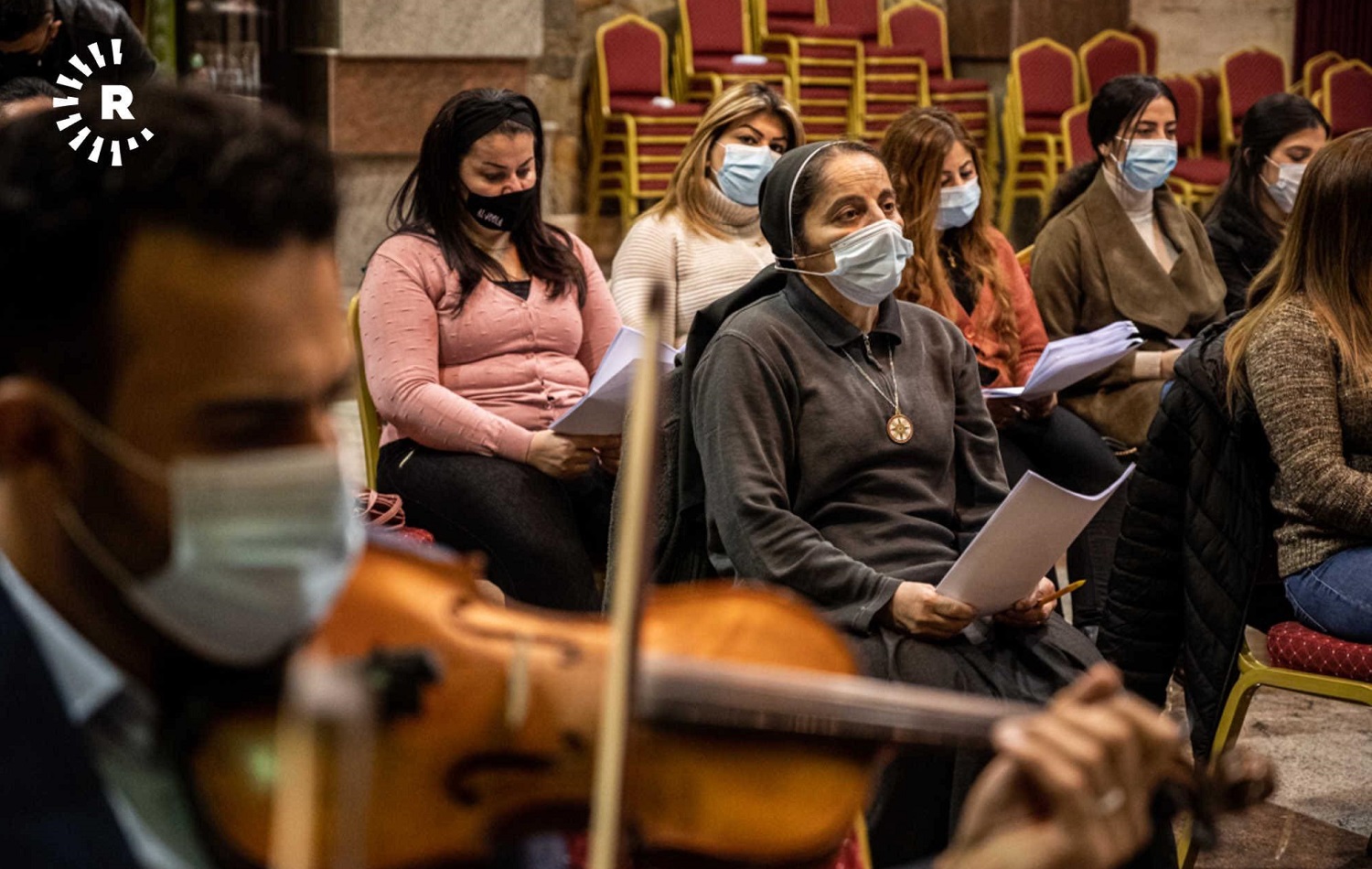 “It is a big challenge for us, to prepare... but he will come, and he will bring with him peace for this land. Everyone is looking for the corona vaccine, but we are looking for a peace vaccine,” he told Rudaw English. From the room next door, Cosa can be heard guiding the choir as they prepare songs in Italian, Arabic, and Syriac, a variety of Aramaic.