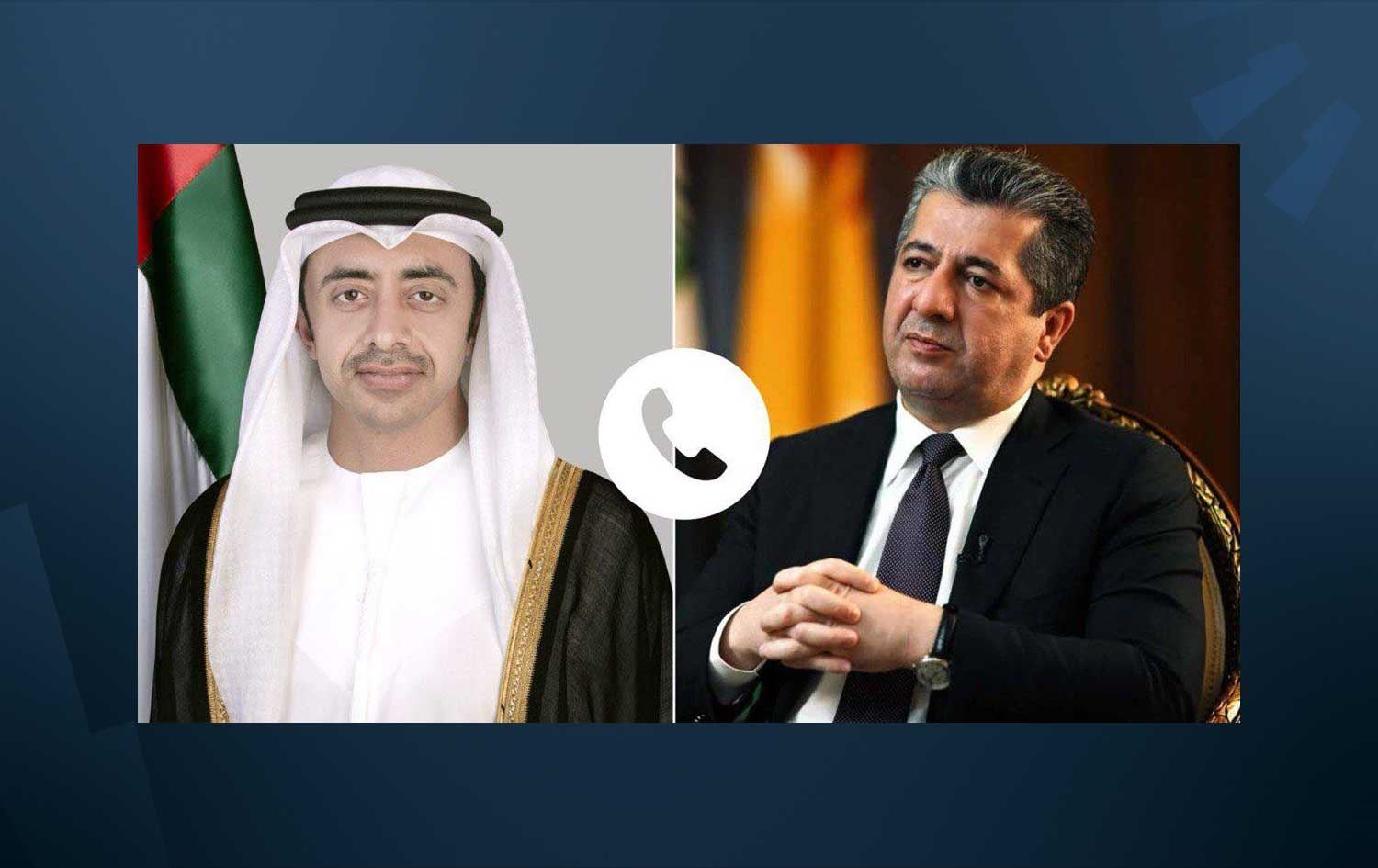 ERBIL, Kurdistan Region - Kurdistan Region Prime Minister Masrour Barzani on Wednesday spoke with United Arab Emirates Foreign Minister Sheikh Abdullah bin Zayed Al Nahyan to discuss averting regional dangers and de-escalating tensions.
