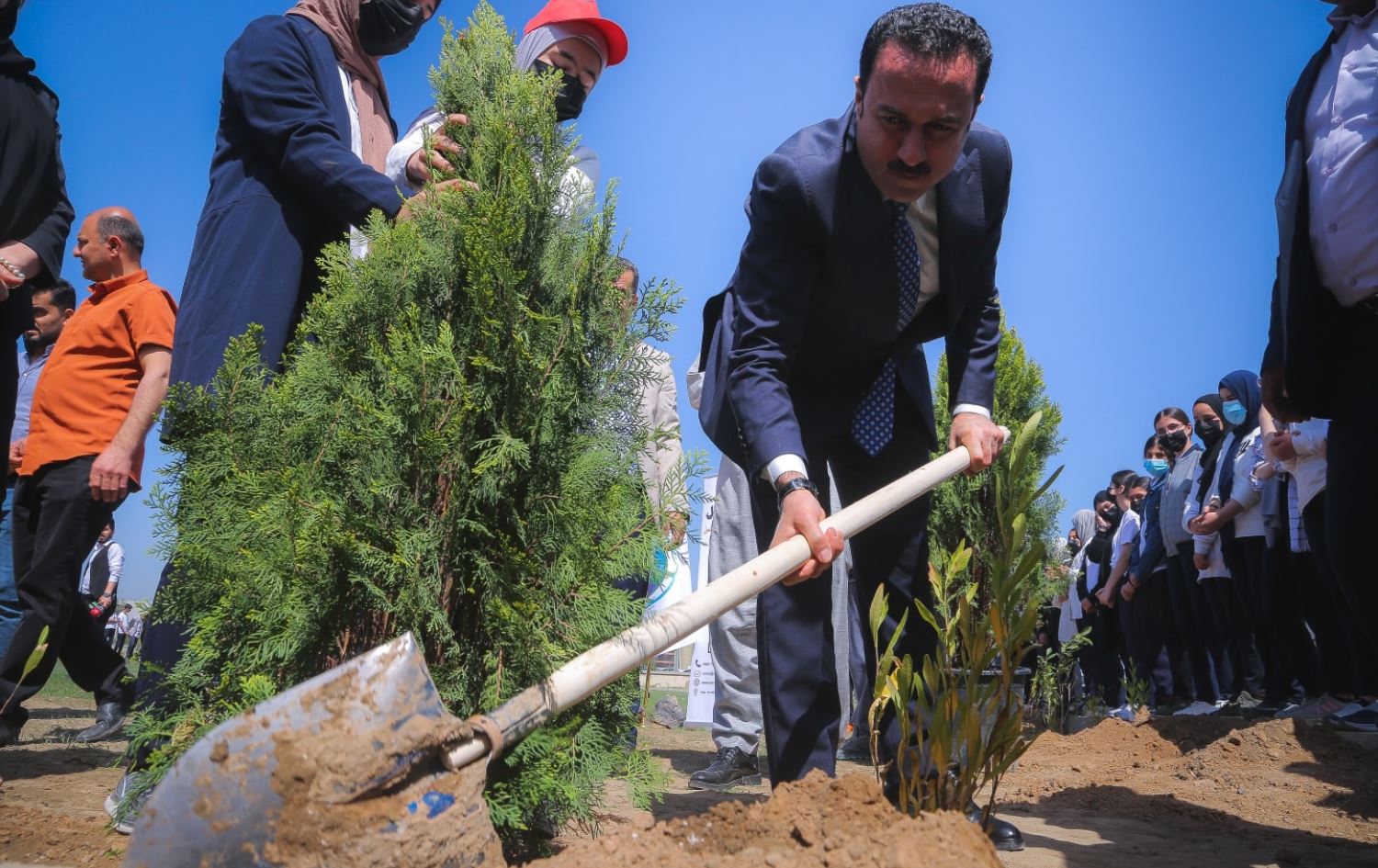 Erbil Governor Omed Khoshnaw plants a tree in the city to mark the first Erbil Environment Day on April 4, 2022. Photo: Handout
