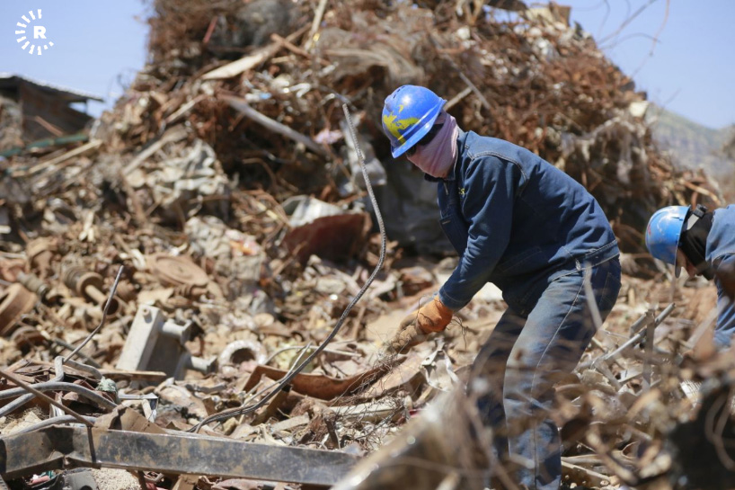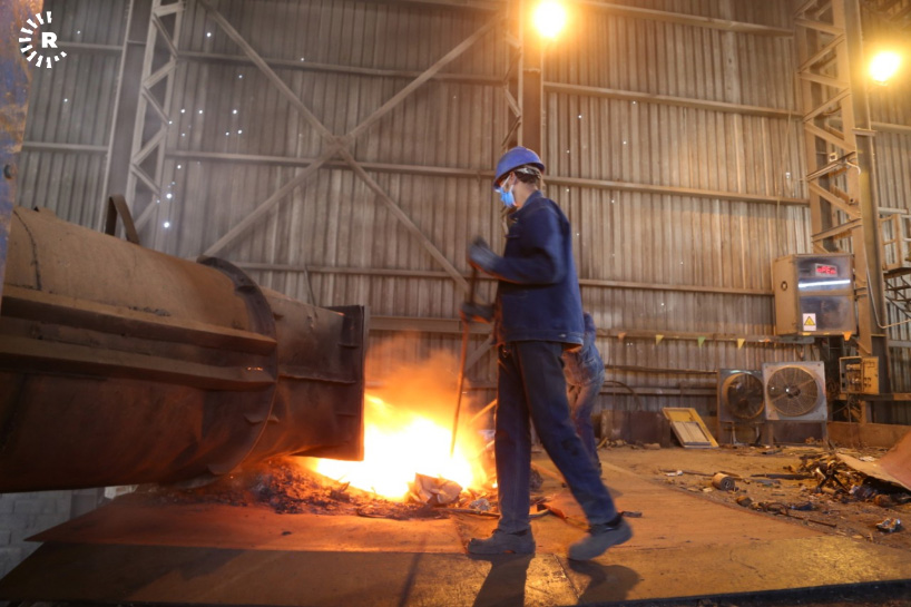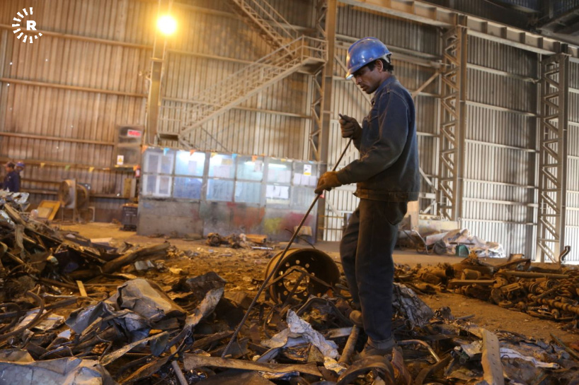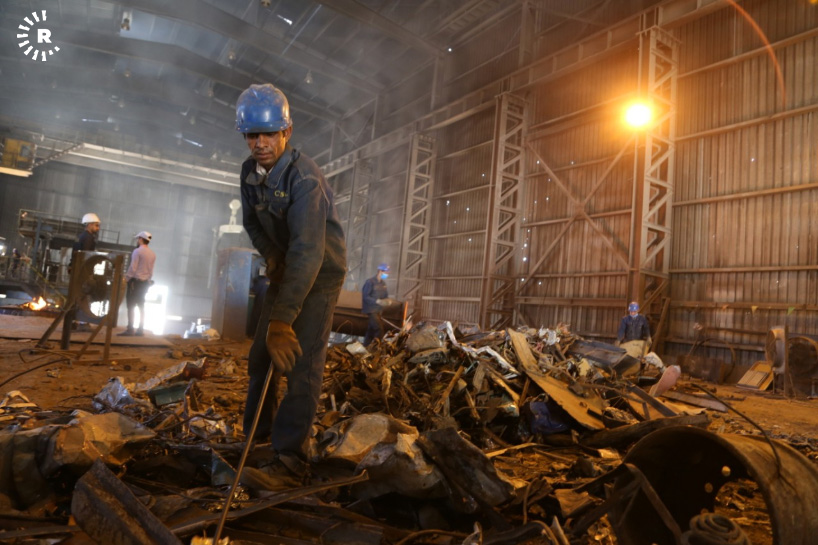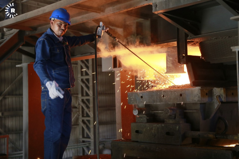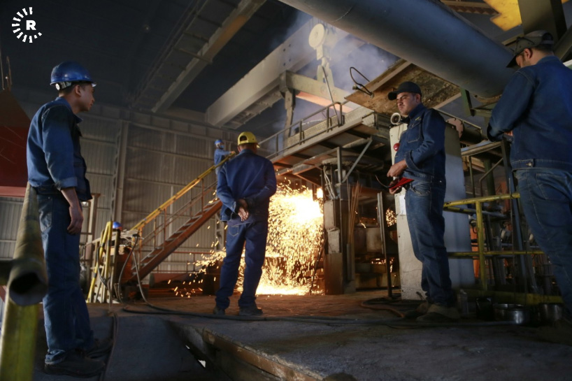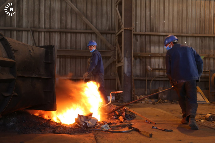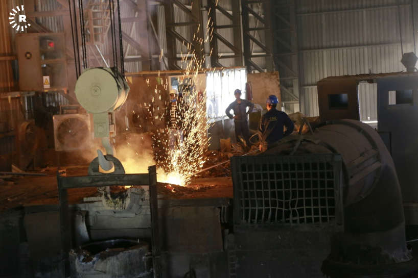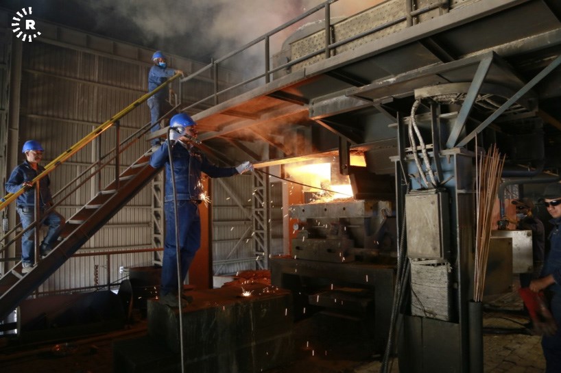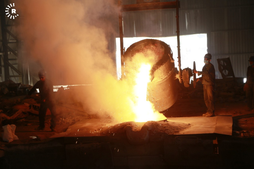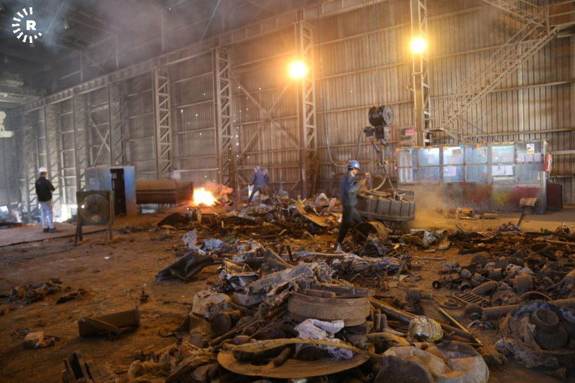 A facility in Sulaimani is reclaiming old steel by melting scrap into ingots. The metal can then be reused for construction and other purposes.