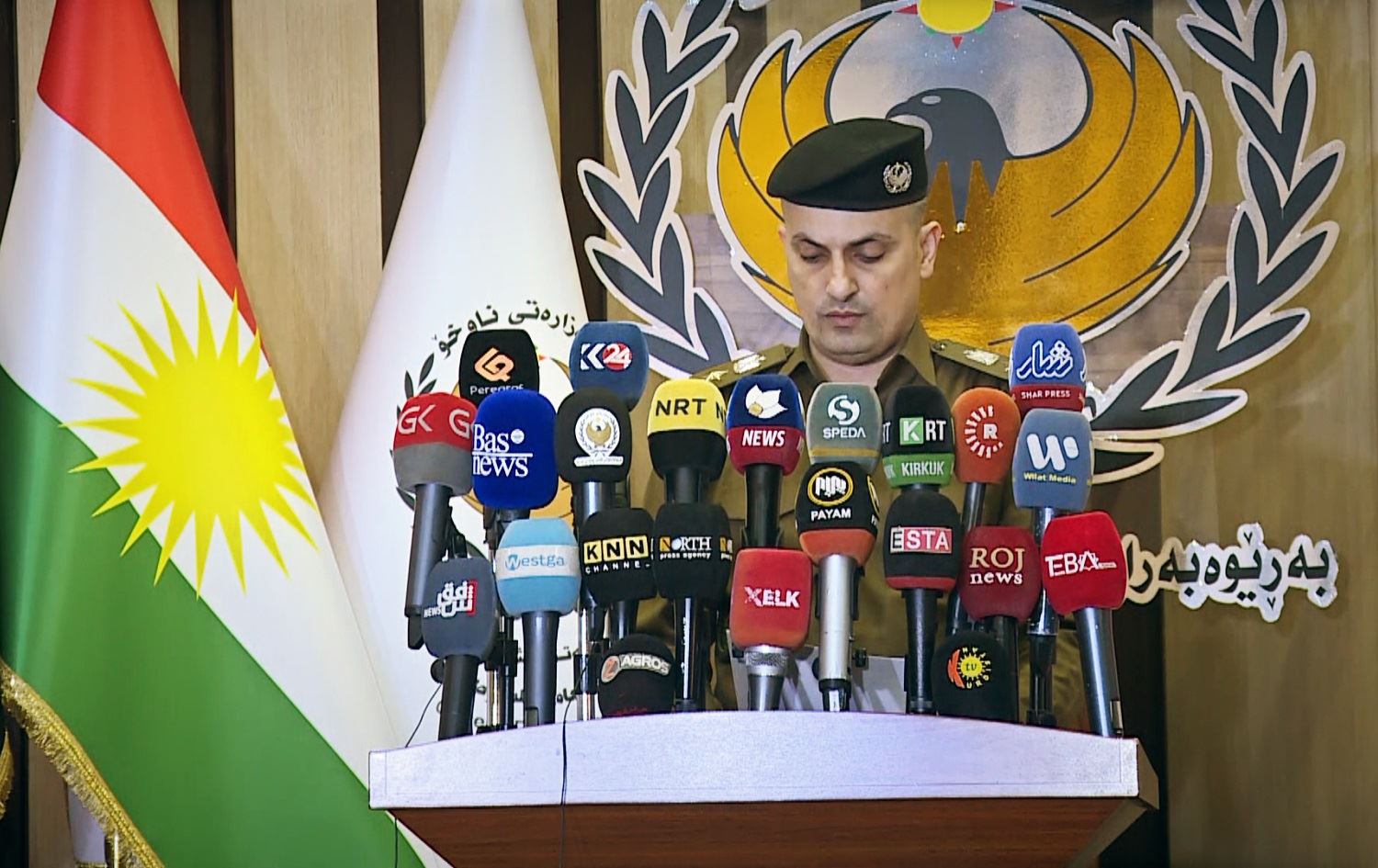 Karzan Amir, spokesperson for the Kurdistan Region’s police, speaking in Erbil on January 5, 2021. Photo: Rudaw
