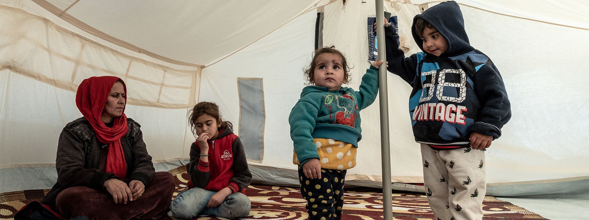 Over 450 of the newly-arrived migrants came alone. Between three and five people are living in a single tent.