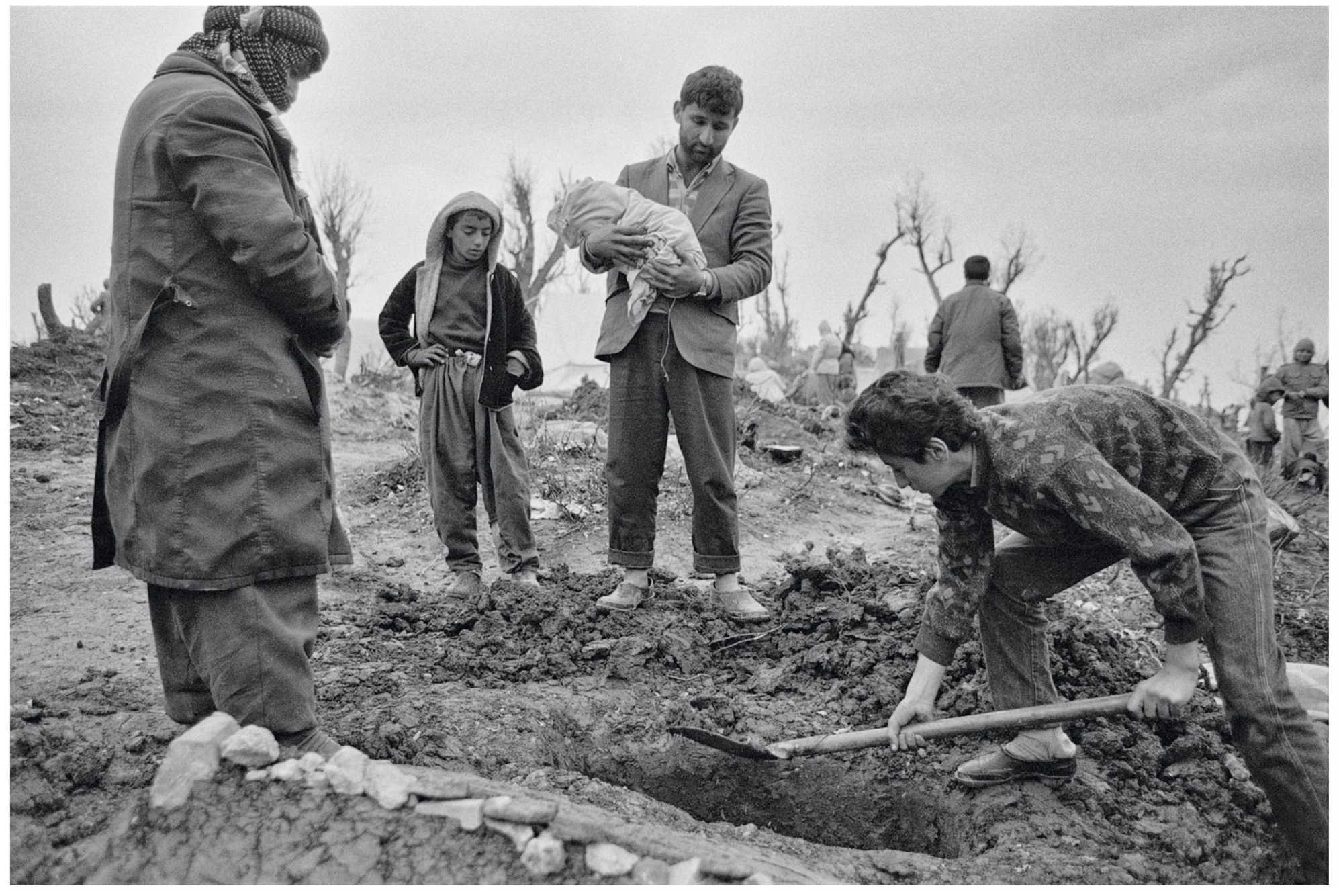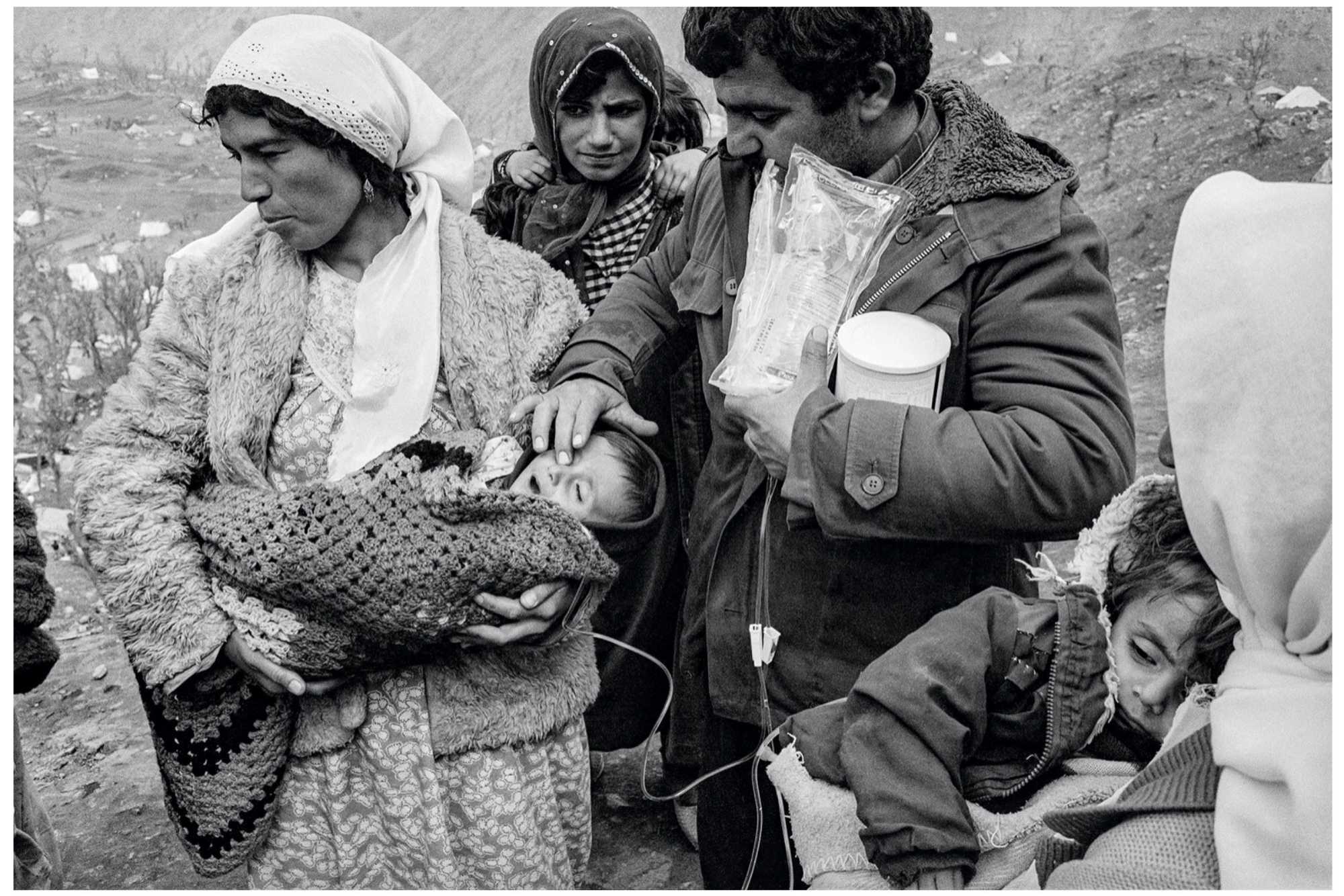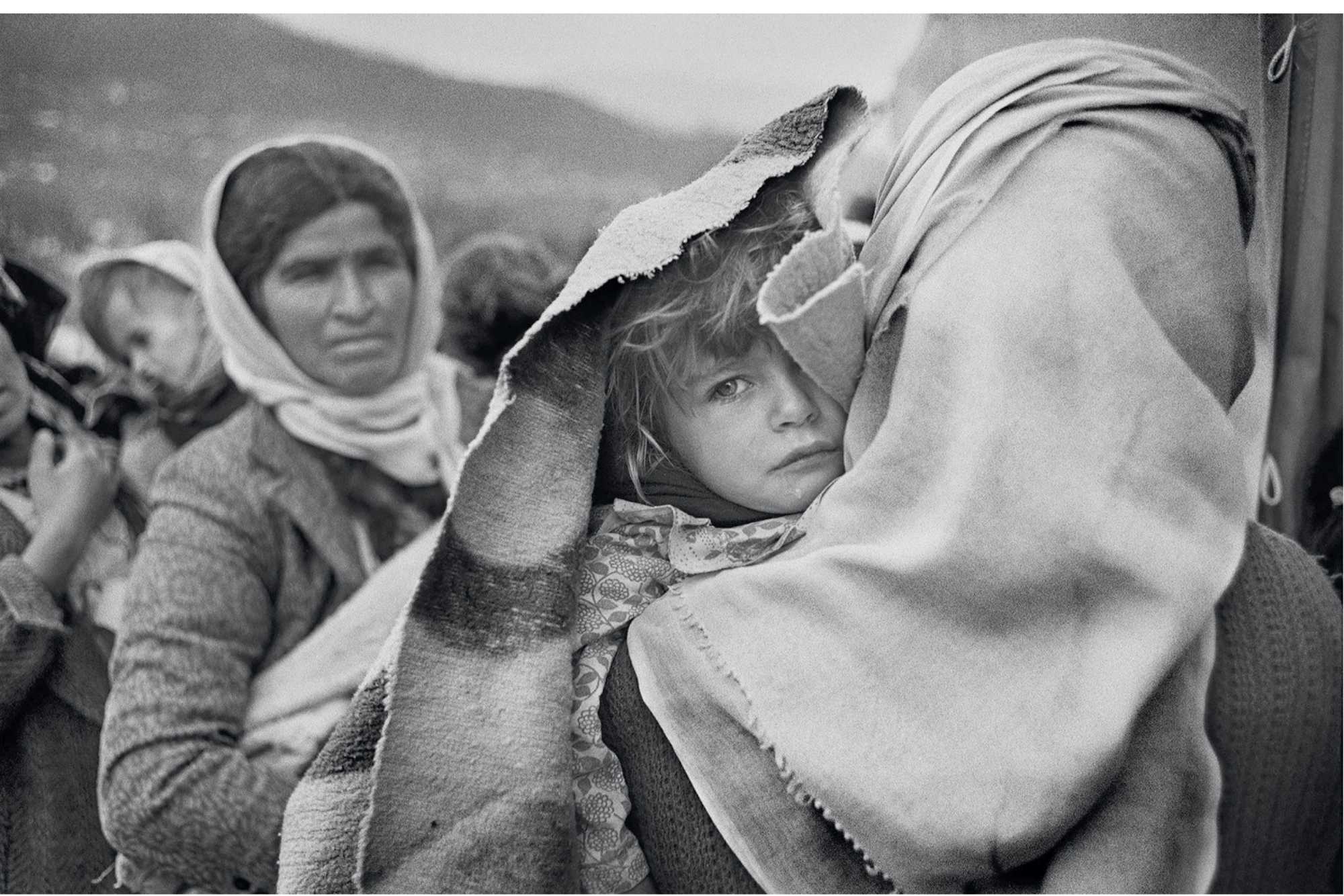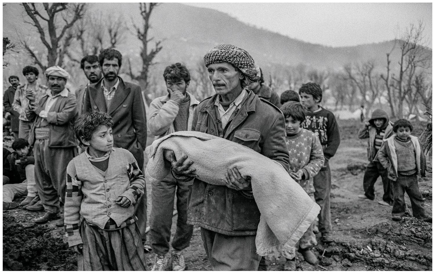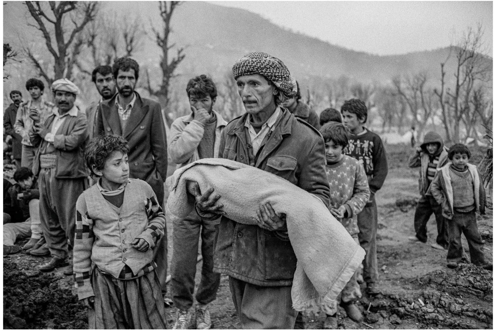 “Amongst the images that I made, there’s an image of a man probably in his 60s, carrying in his arms a little white bundle, which turned out to be his daughter that he was about to bury. This image has always stayed with me…it almost tells the whole story of this Kurdish exodus, because of the number of people that died crossing the mountains, which were covered in snow and ice at the time.”