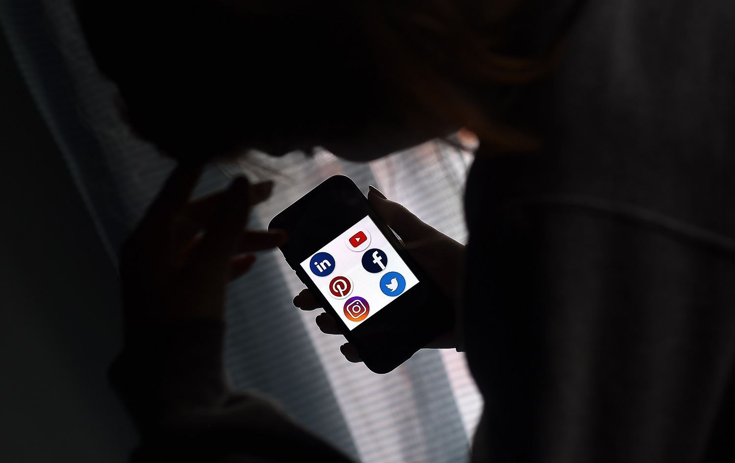 Social media application logos from Linkedin, YouTube, Pinterest, Facebook, Instagram and Twitter displayed on a smartphone in Arlington, Virginia on May 28, 2020. Photo: Olivier Douliery/ AFP