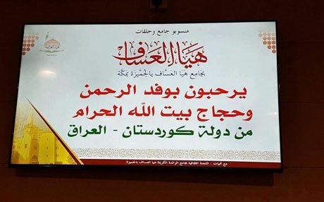 “At a religious event which was organized for foreign pilgrims in Makkah’s Jumez mosque, Kurdish pilgrims were welcomed under the banner of Kurdistan Country-Iraq,” Karwan Stuni, head of the Hajj and Umrah Announcement in Kurdistan, told Rudaw by phone from Saudi Arabia.