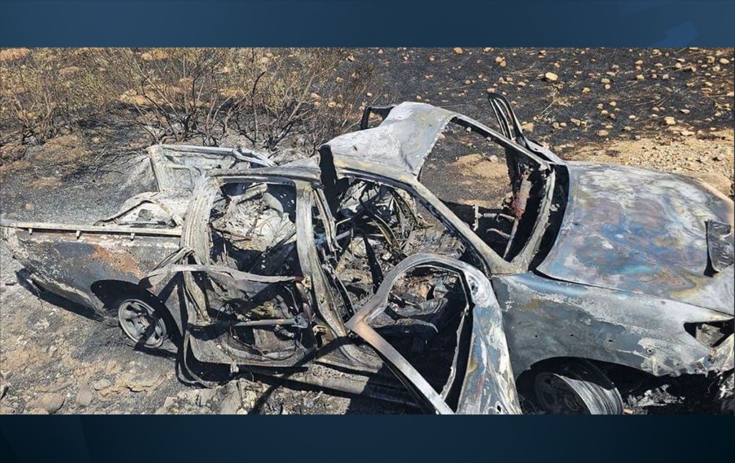 A vehicle in Sulaimani's Zalan sub-district of Chwarta that was burned due to a suspected drone strike on September 5, 2024. Photo: Submitted