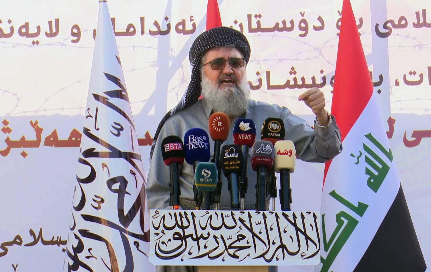 IMK leader Erfan Ali Abdulaziz speaks during a press conference in Halabja on October 5, 2021. Photo: Rudaw/screengrab