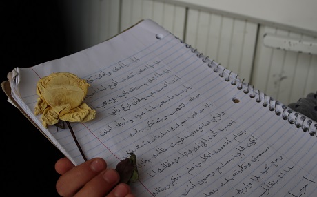 Anwar, 18, has filled a whole notebook with poems for her father.