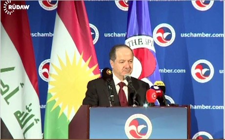“I saw President Obama and Vice President Joe Biden in the white house,” said Barzani in a speech at the US Chamber of Commerce Tuesday evening. “I conveyed to them the thanks of the people of Kurdistan for their support in the difficult times.”