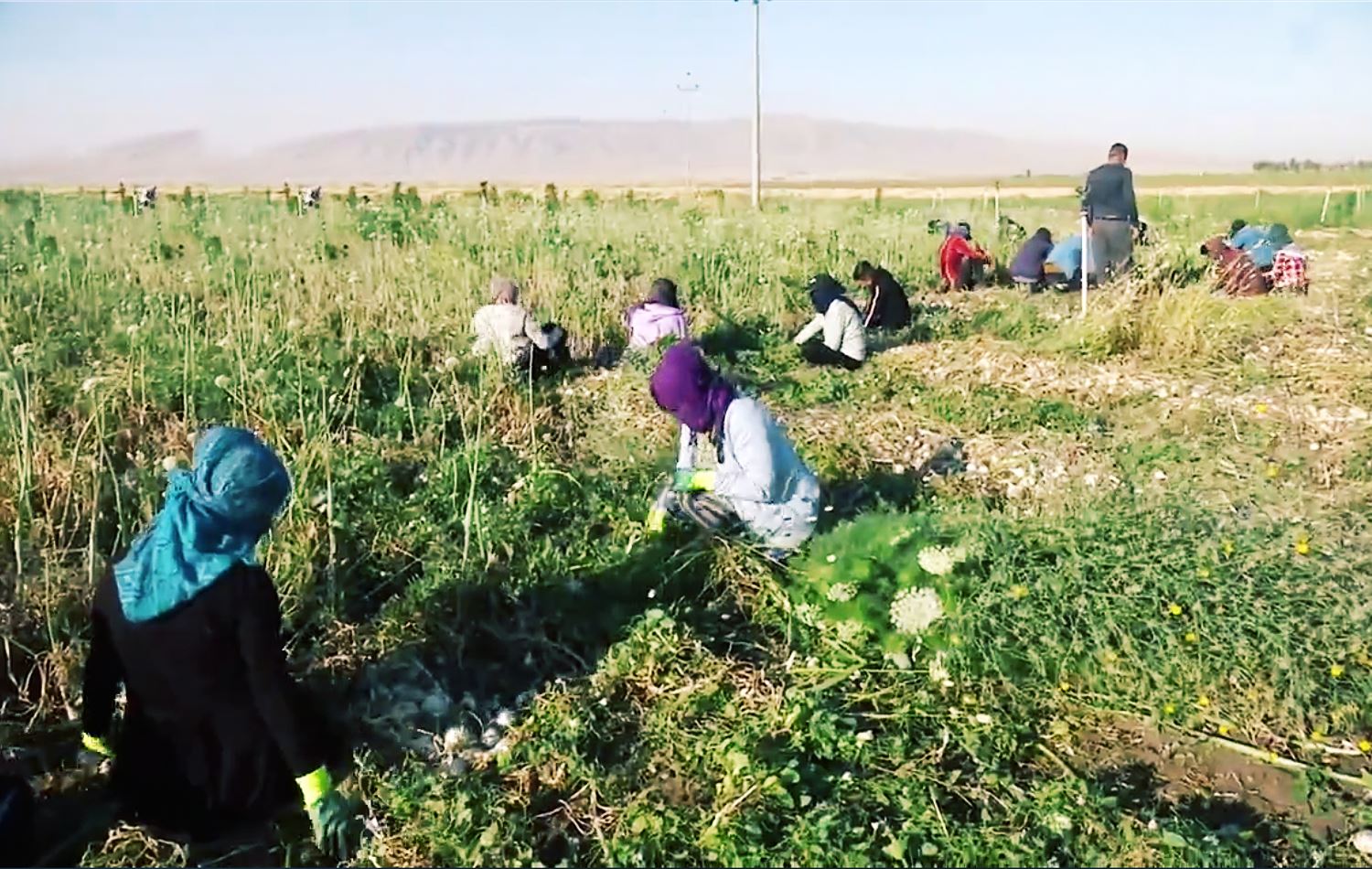 Salar Sheikh Rasheed is a farm owner who hires displaced Yezidis to work on his farm. Of the 60-strong team he employs, 23 are women.