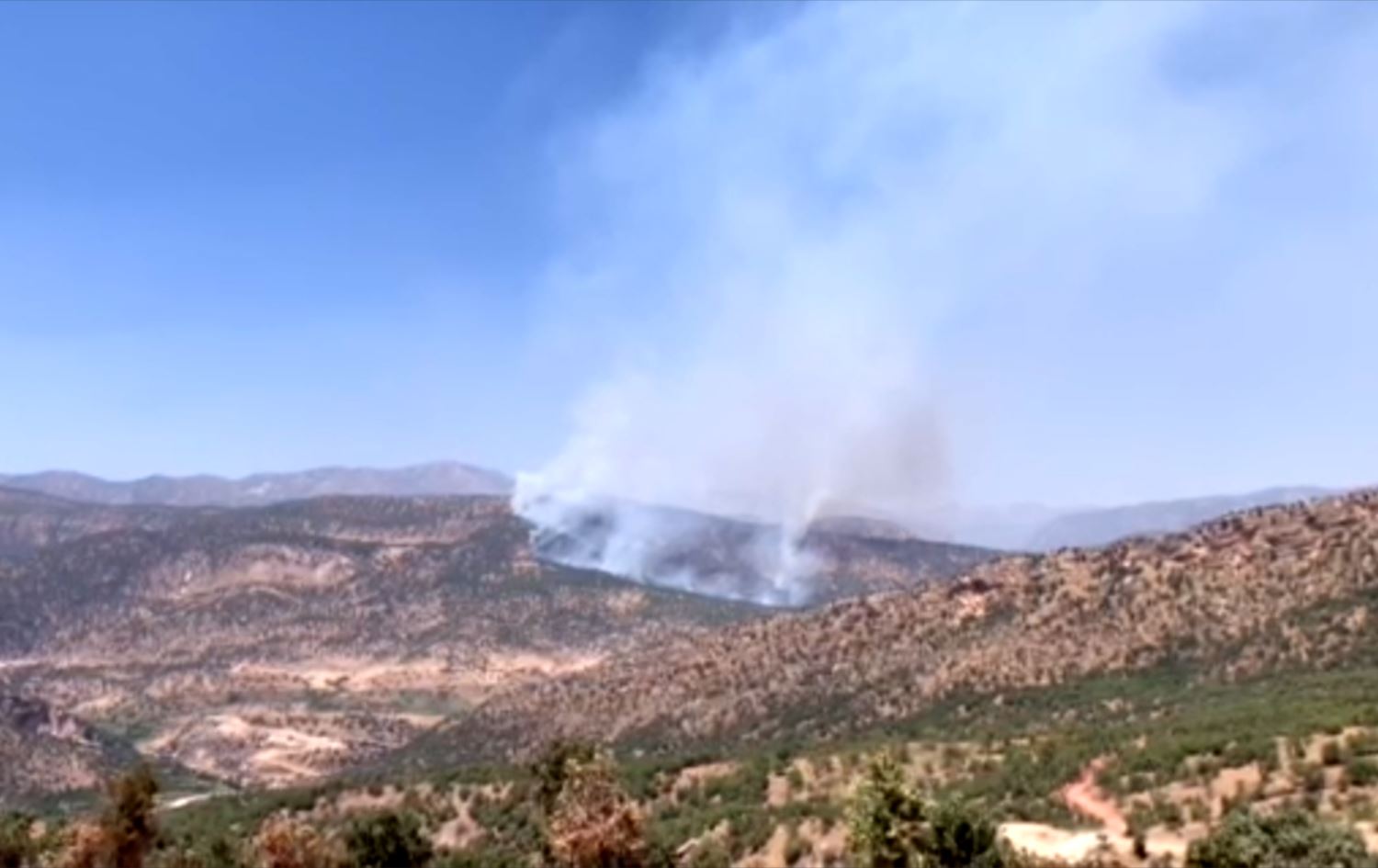The vicinity of Upper Hazanke, a Christian village in Chamnke subdistrict, has been on fire since 11am, according to Chamanke mayor Aland Amir, who said firefighters cannot visit the site due to security concerns.