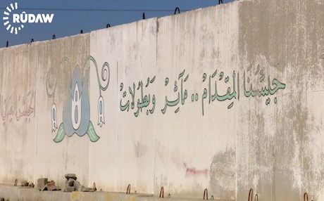 This is Kaywan, the biggest base of Iraqi army’s Dijla operation in Kirkuk where as many as 12,000 soldiers dropped their weapons when ISIS attacked in 2014 and all that remains of their presence is slogans on the walls.
