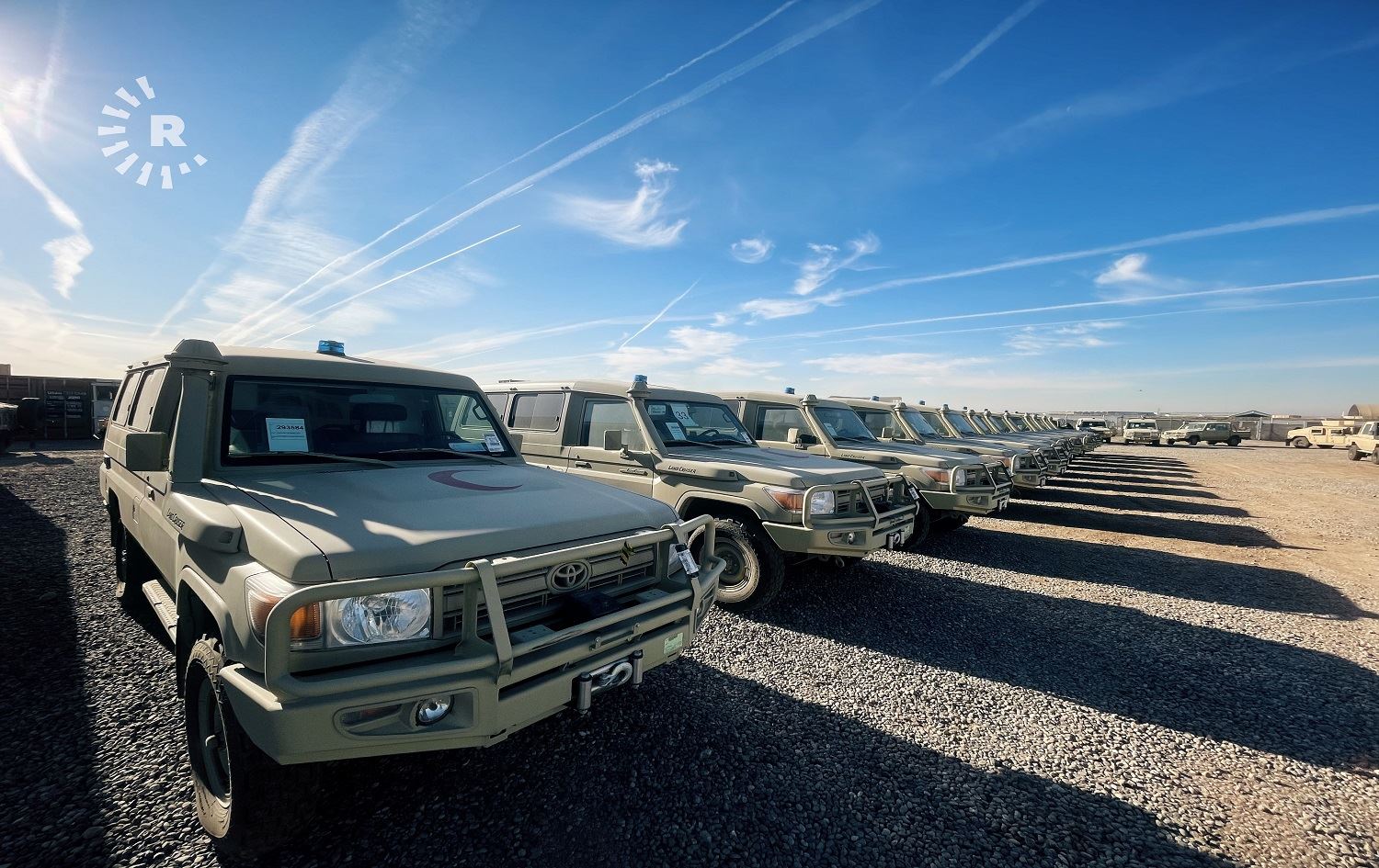 Trucks donated to the Ministry of Peshmerga at Erbil International Airport on January 7, 2021. Photo: Fazel Hawramy/Rudaw