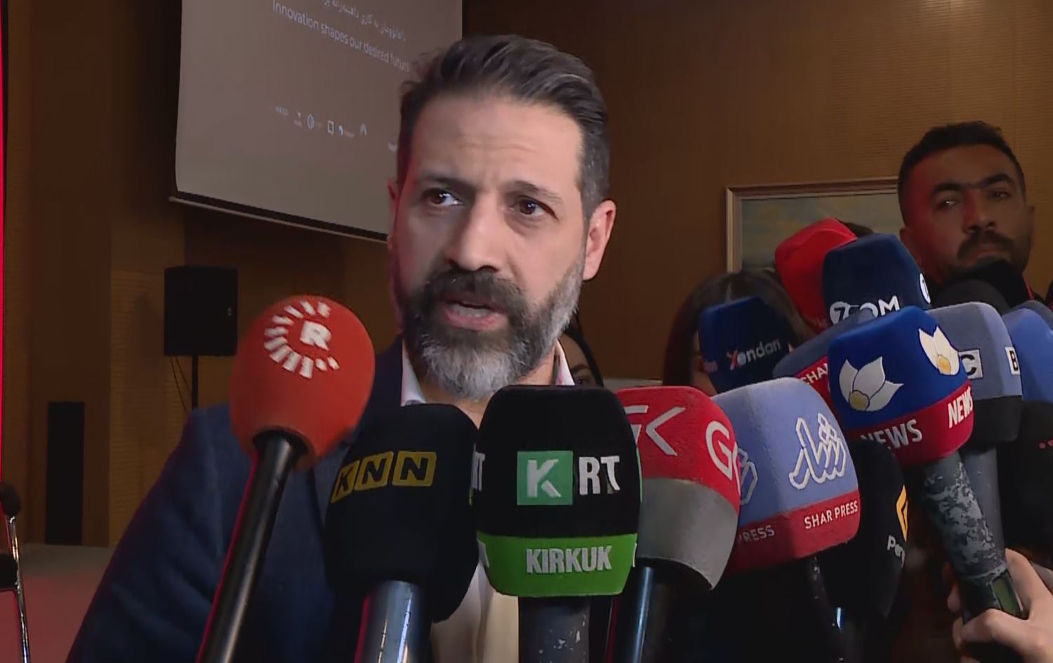 Kurdistan Region Deputy Prime Minister Qubad Talabani speaking to reporters in Sulaimani on January 7, 2024. Photo: Rudaw/screengrab