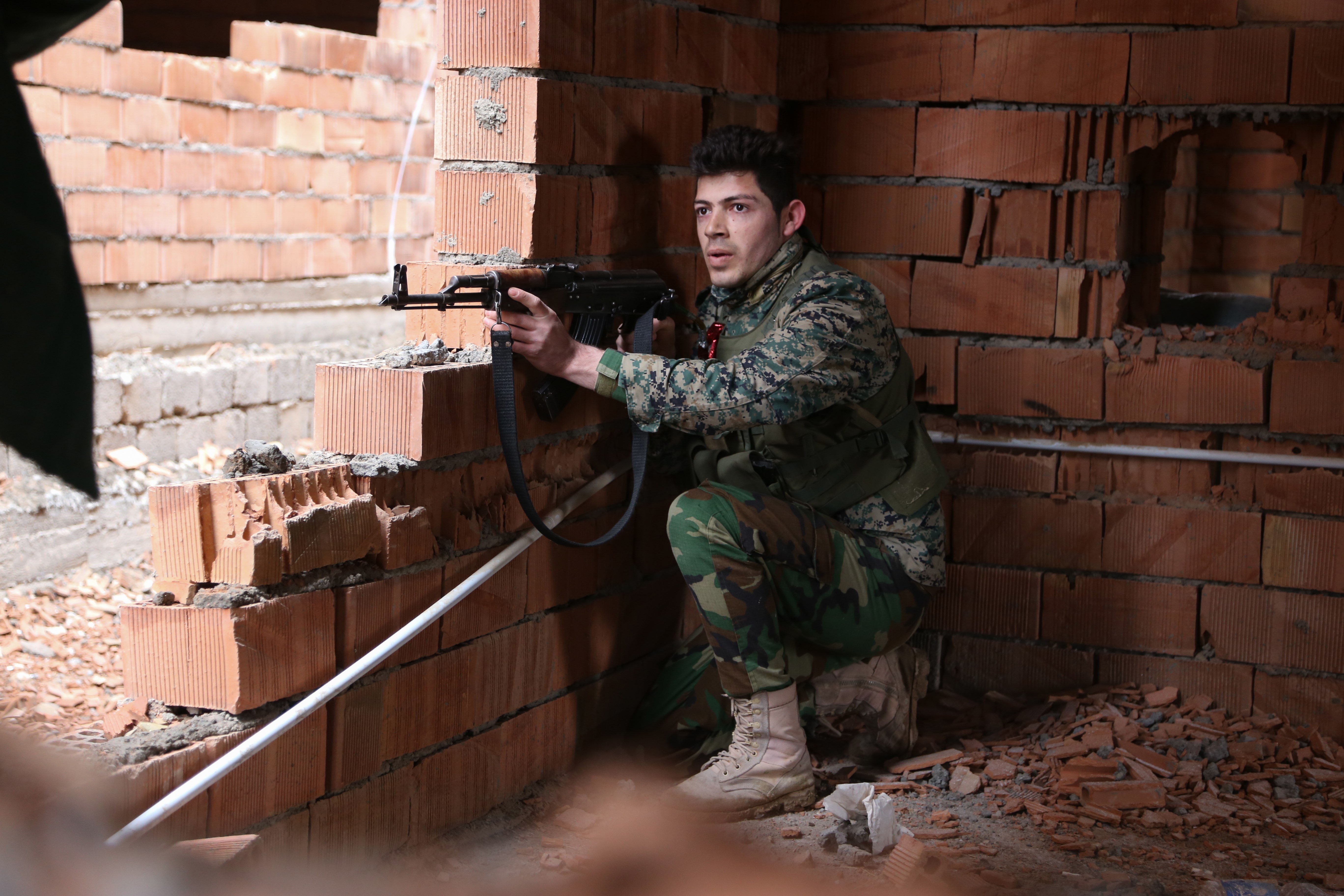 Members of the US-led coalition are training the Kurdish Peshmerga on tactics of urban warfare.