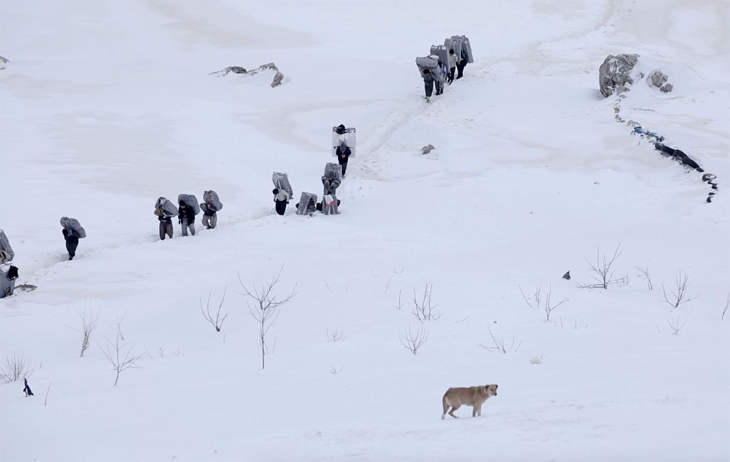 The make their journey in treacherous conditions; through blizzards, and steep, twisting paths.