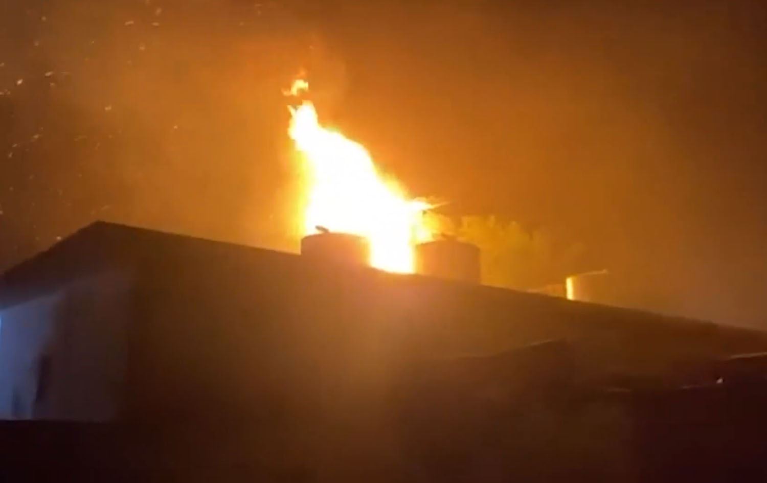 Flames rising from the mosque at the Makhmour refugee camp on October 7, 2023. Photo: Submitted.