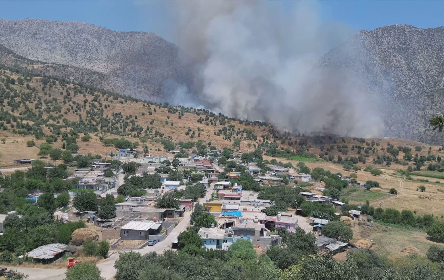 A fire in the vicinity of a Duhok village caused by Turkey-PKK fighting on July 4, 2024. Photo: Rudaw