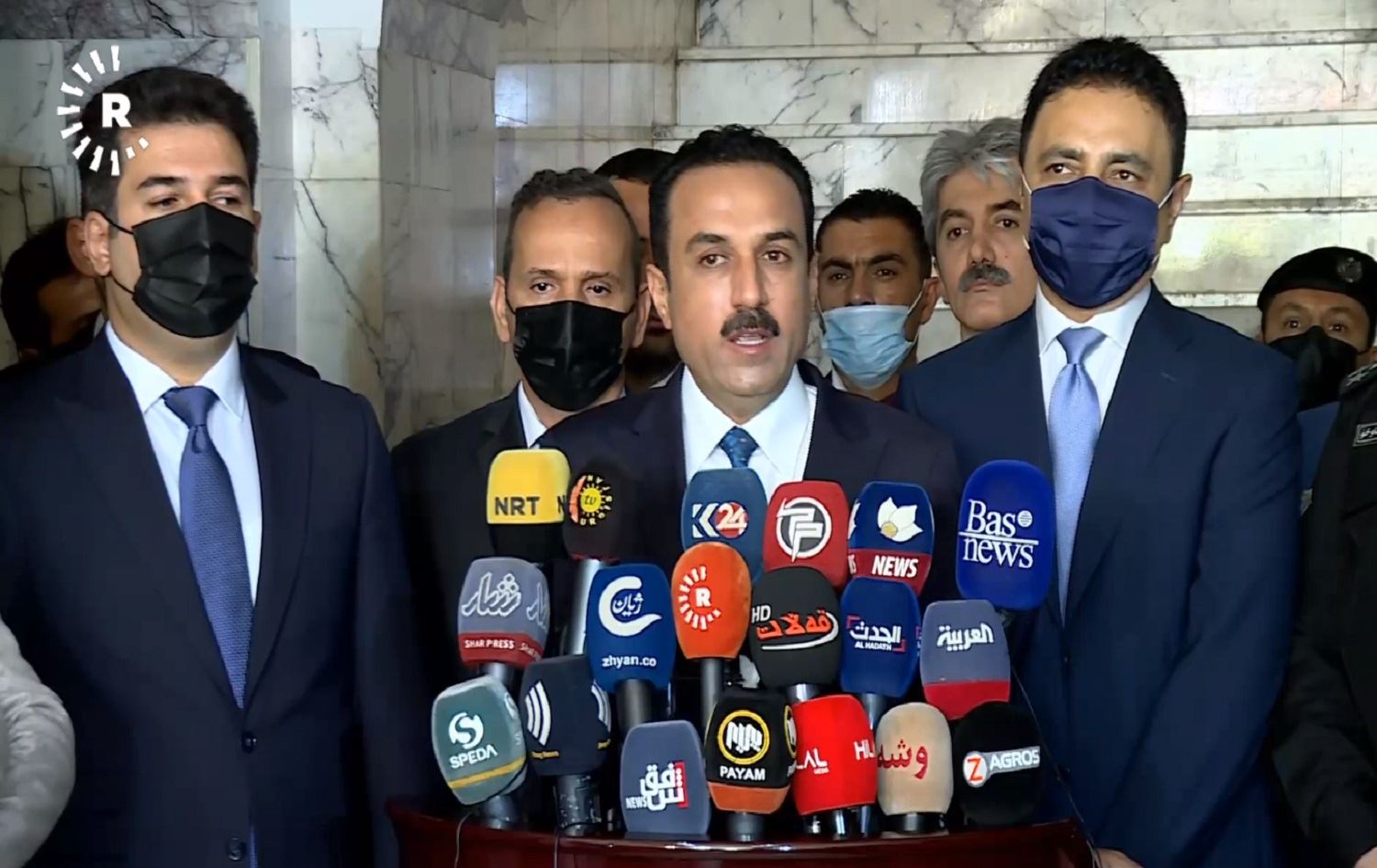 Erbil Governor Omed Khoshnaw speaks during a press conference in Erbil on July 8, 2021. Photo: screenshot