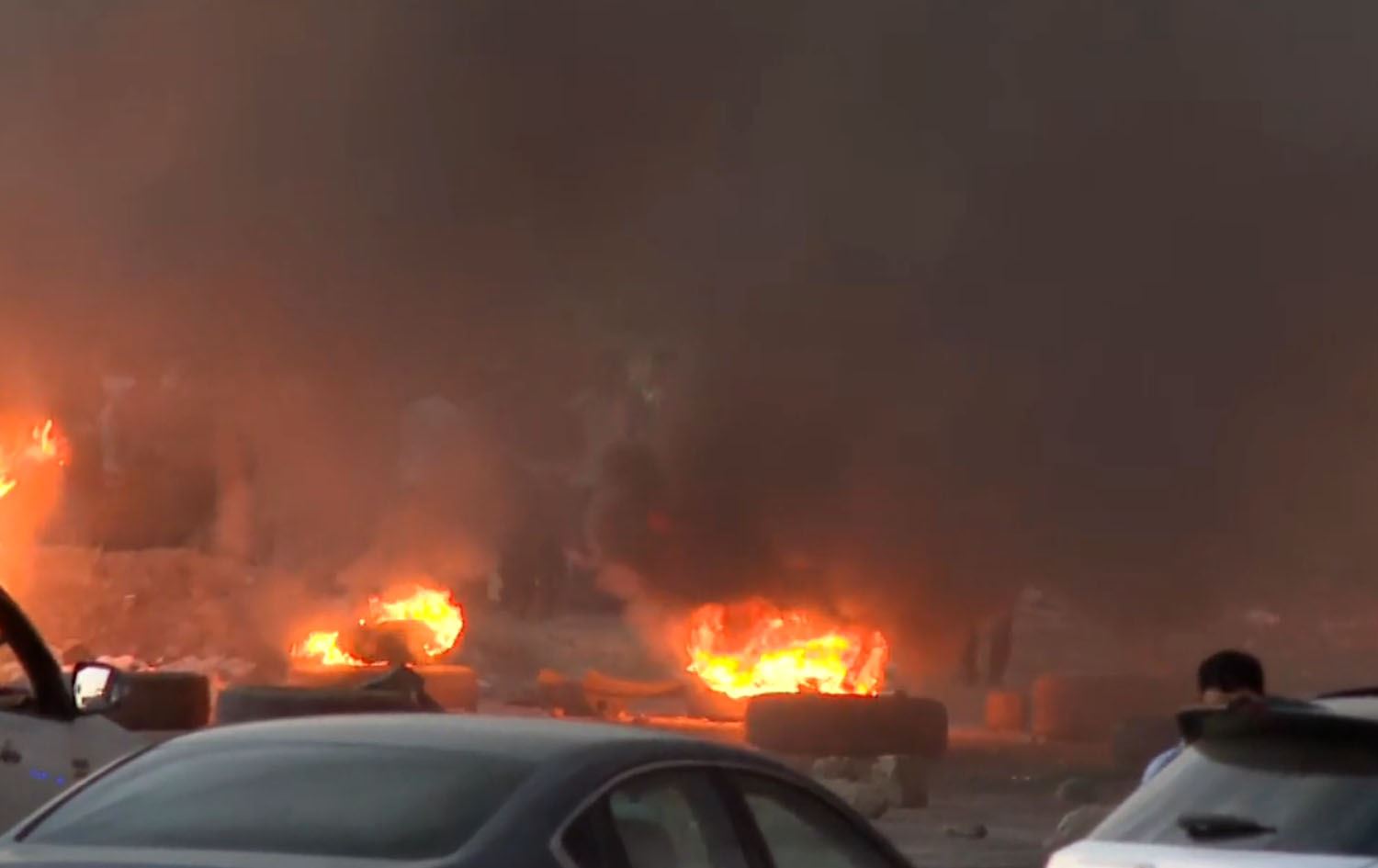 Loyalists of tribal figure burn tires in western Erbil on July 8, 2025. Photo: Screengrab/Rudaw