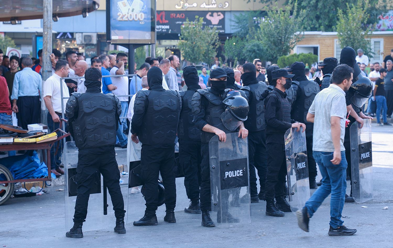 Security forces deploy during a rally by supporters of the New Generation in the Kurdistan Region’s city of Sulaimani on August 6, 2022. Photo: Shwan Mohammed/AFP
