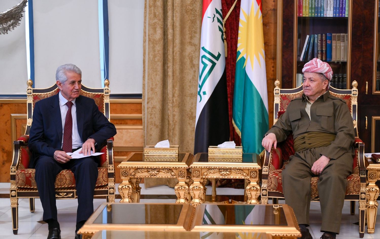 President Masoud Barzani (right) and ENKS President Mohammed Ismail (left) in a meeting in Pirmam, Erbil, on February 9, 2026. Photo: Barzani Headquarters