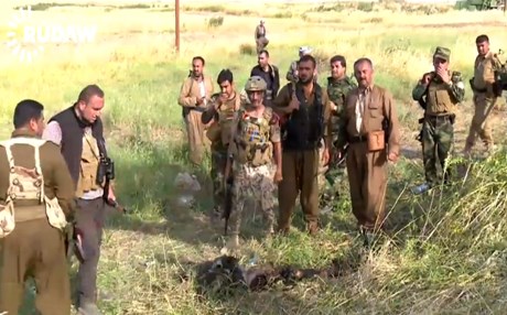 “I was filming the dead ISIS with my cell phone when I saw one of them moving his leg and I placed my hands on his chest trying to help him breathe,” the Peshmerga commander said of the moment following the fighting.