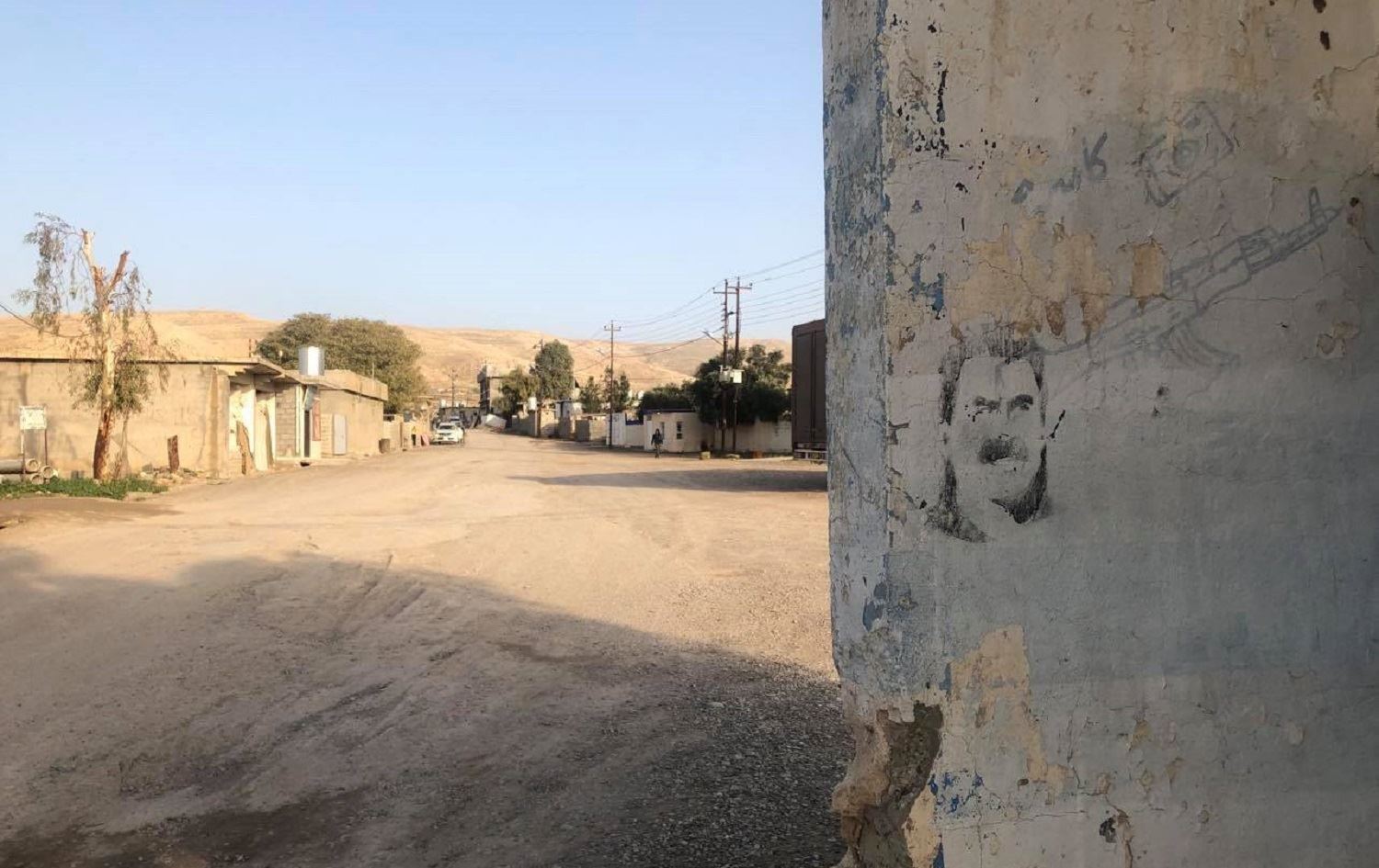 A painting of Abdullah Ocalan, the jailed leader of the Kurdistan Workers’ Party (PKK), on a wall in Makhmour camp in February 2020. Photo: Fazel Hawramy/Rudaw