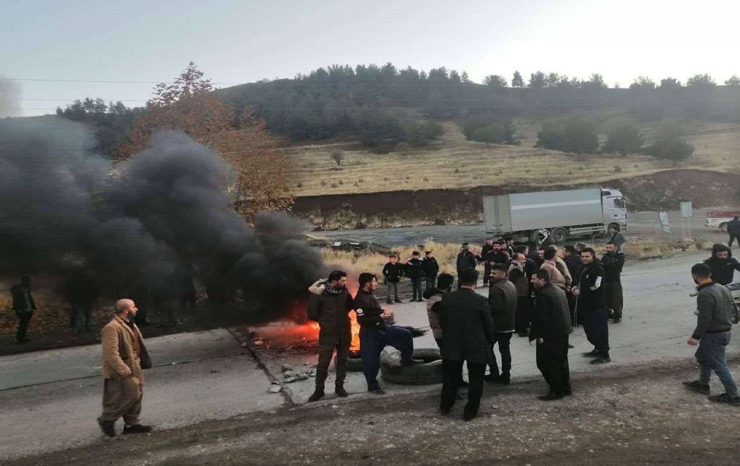 Protesters block a road in Penjwen, Sulaimani province on December 8, 2020. Photo: Penjwen Post