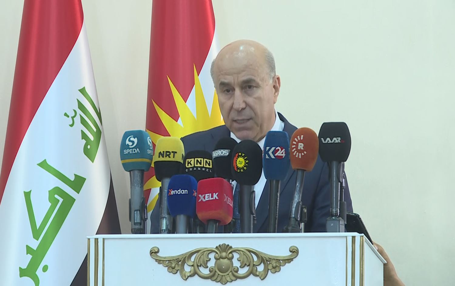 Former Erbil Governor Nawzad Hadi speaking at his farewell press conference in Erbil on September 10, 2019. Photo: Rudaw TV