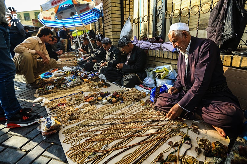 The hands of older Kurdish men, and some women, are often occupied with the long, thin strands of beads that some use for prayers and others simply out of habit.