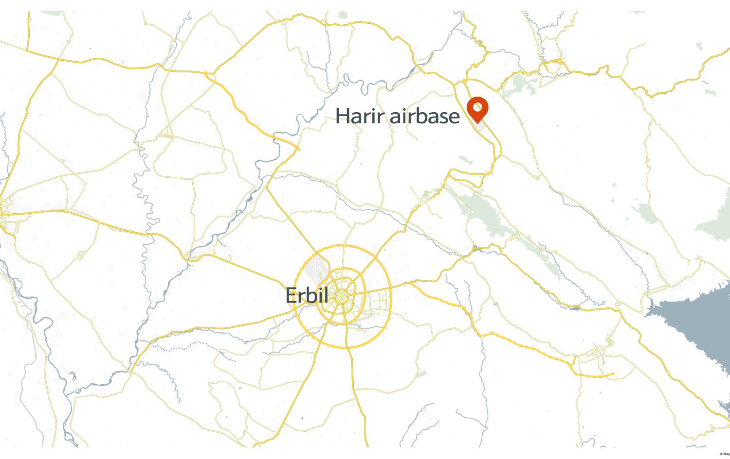 ERBIL, Kurdistan Region - US-led coalition defense personnel at Erbil province's Harir airbase responded to an attempted drone attack on Monday, a military spokesperson for the coalition told Rudaw English on Wednesday, adding that the US-led global coalition is investigating the incident which damaged adjacent homes and vehicles.