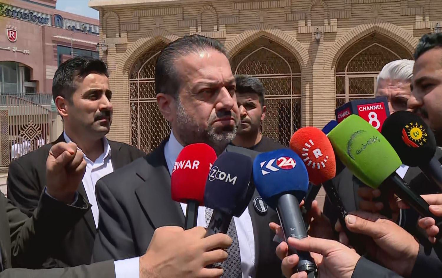 Former Iraqi Deputy Finance Minister Rebaz Hamlan speaking to reporters in Erbil on June 11, 2025. Photo: Rudaw