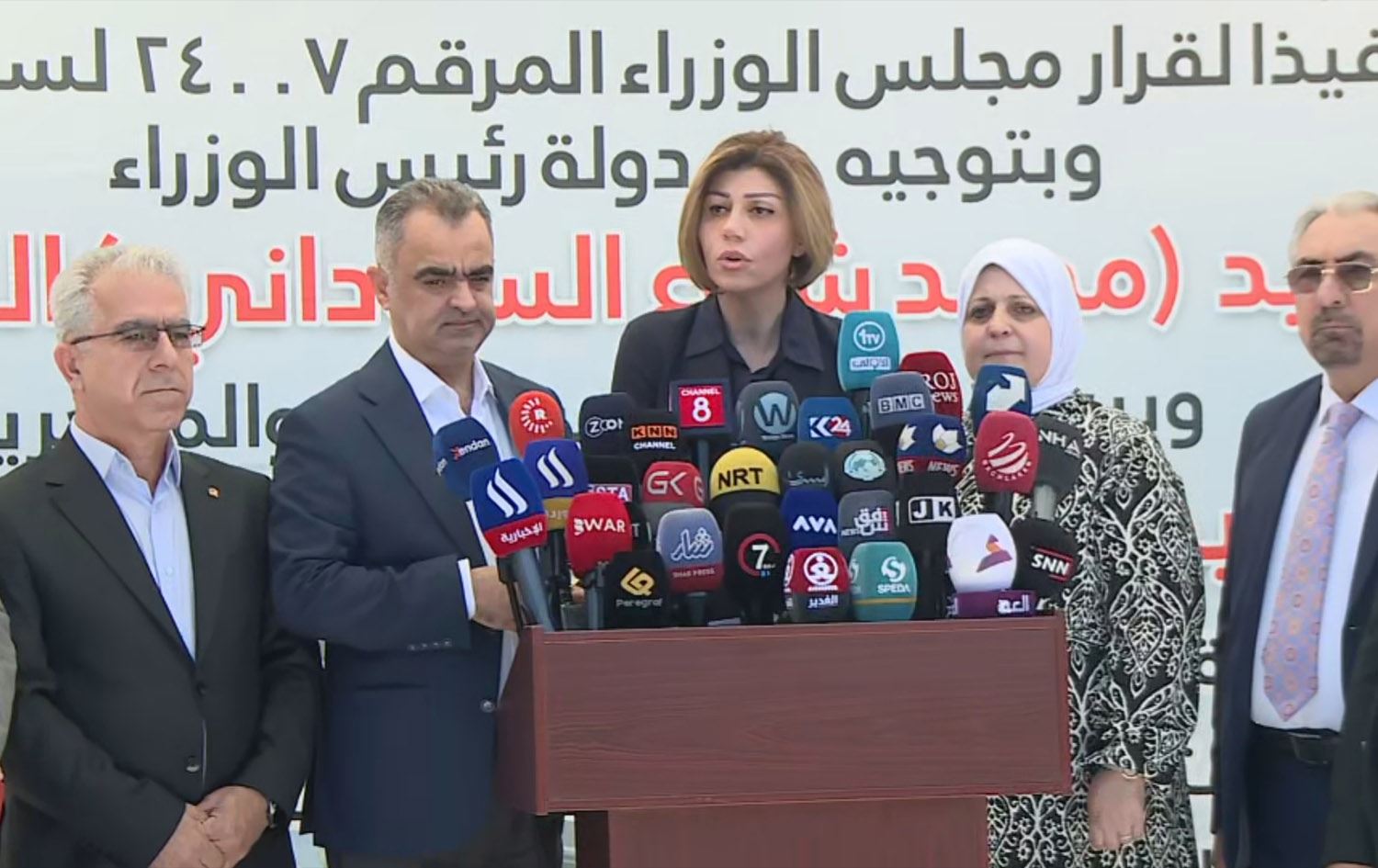 Iraqi Minister of Migration and Displaced Evan Faeq Jabro announcing the closure of Ashti camp during a press conference in Sulaimani province on July 11, 2024. Photo: Rudaw