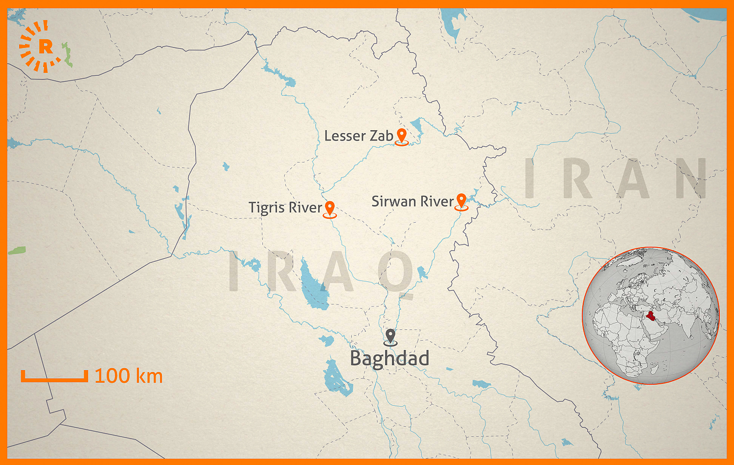 The Lesser Zab, Zei Bchuk in Kurdish, originates in northwestern Iran’s Zagros Mountain range and follows a roughly 400-kilometre long course, marking a stretch of the international frontier before turning into the Kurdistan Region where it fills the Dukan reservoir, and eventually flows into the Tigris River.