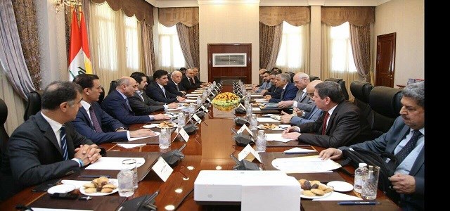 The Iraqi government delegation headed by Jabar Ali al-Luaibi, Iraq's oil minister is in a meeting with Nechirvan Barzani prime minister of the Kurdistan Regional Government (KRG) and a number of cabinet ministers.