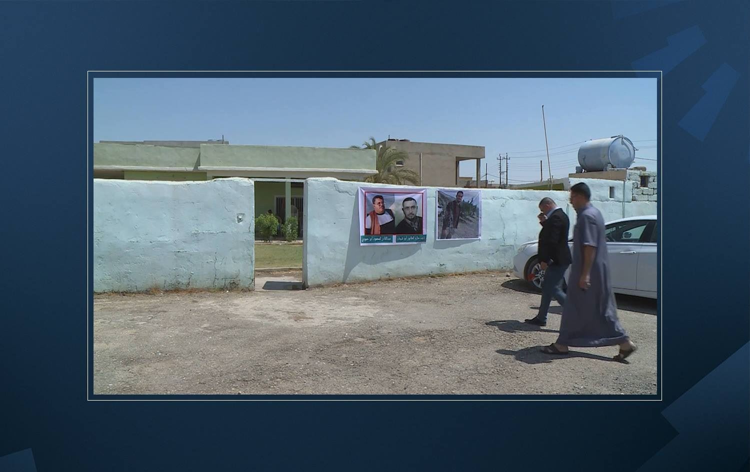 Images of three men abducted by ISIS are displayed outside a home in Makhmour on August 11, 2021. Photo: Rudaw