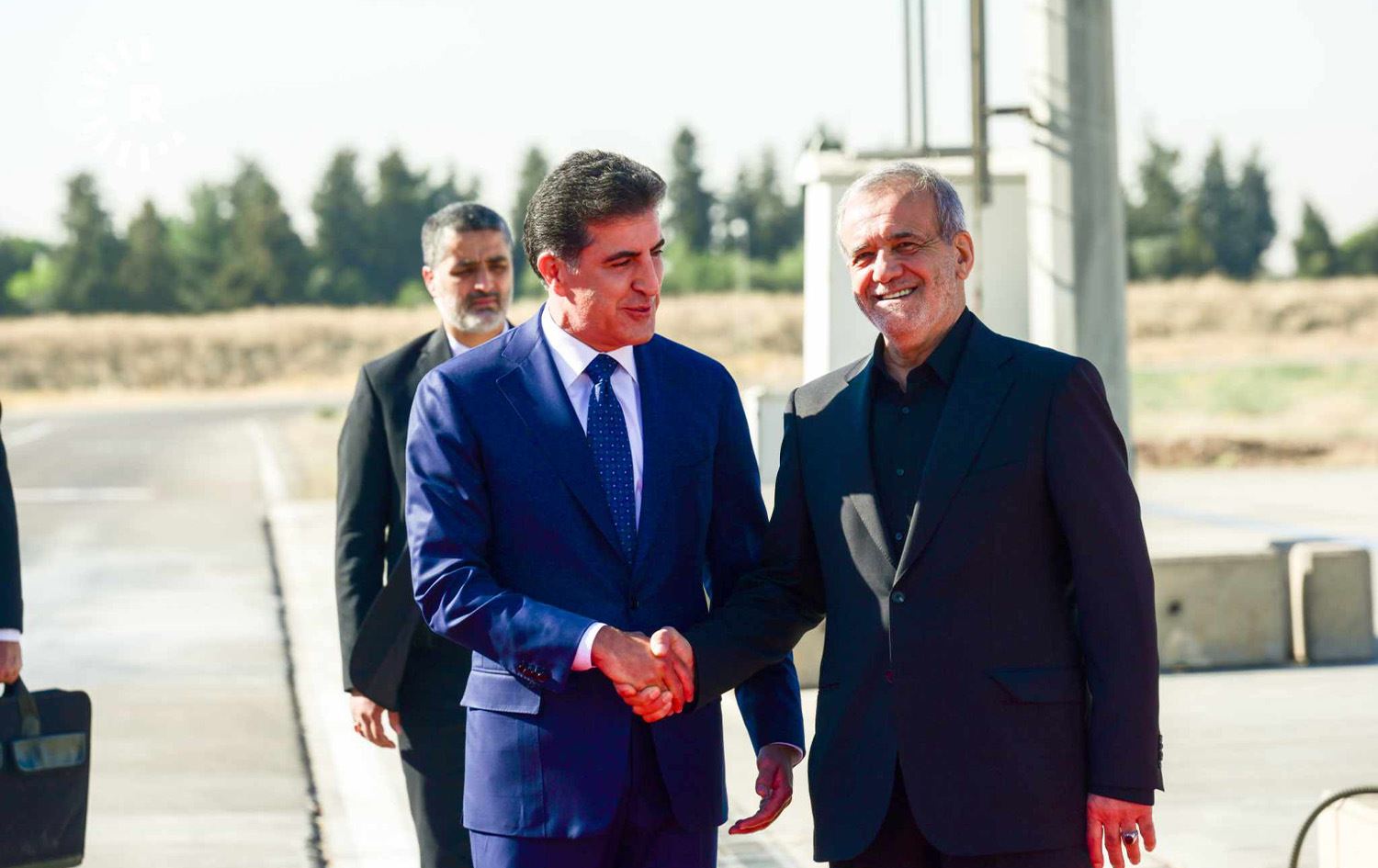 ERBIL, Kurdistan Region - Kurdistan Region President Nechirvan Barzani received Iran’s President Masoud Pezeshkian at Erbil International Airport on Thursday ahead of the Iranian leader’s scheduled meetings with top Kurdish officials on the second day of his trip to Iraq and the Region.
